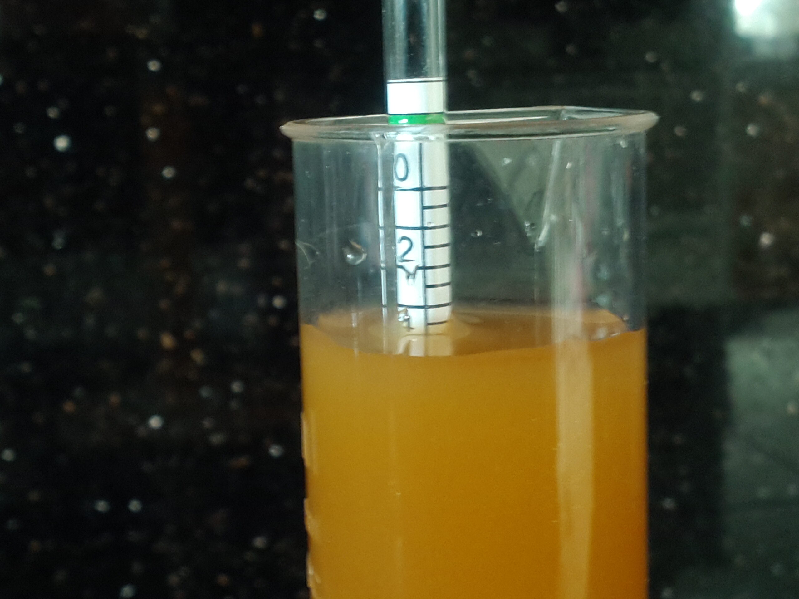 Um sicher zu gehen, ob nicht doch morgen abgefüllt werden kann, habe ich vorhin nochmals eine Probe genommen: 2,0°P