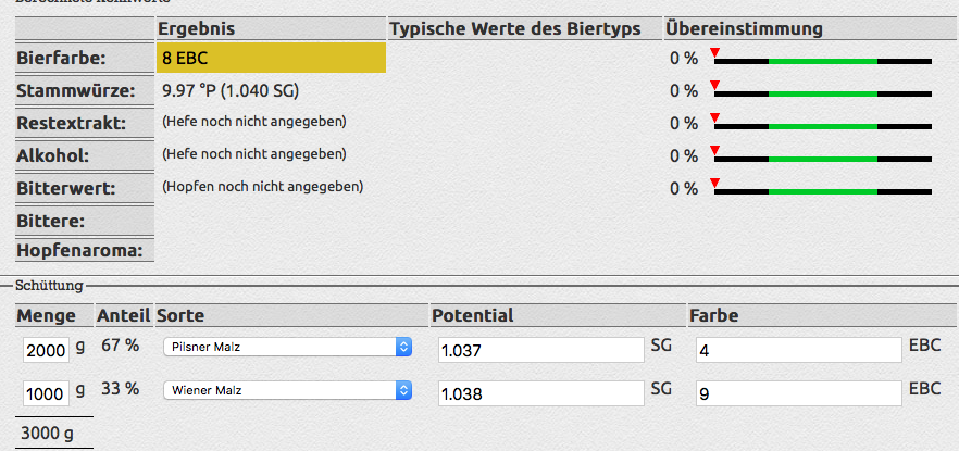 °P,ges= (Formel,Pilsner mit( 2000g/20,5L)) + (Formel,Wiener mit (1000g/20,5L))