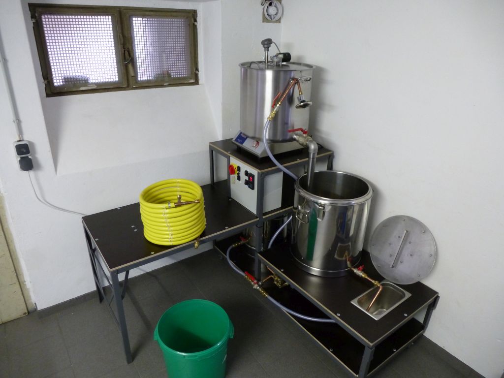 Udo hat damals, soweit ich weiß, alles nur vorher und nachher mit kochendem Wasser durchgespült. (zur Not muss ich halt die Pumpe zerlegen) Werde ich am Anfang sowieso machen. Die Schläuche werden mit Gardena-Kupplungen zu einem langen Schlauch verbunden und mit Cemie oder kochendem Wasser im Kreislauf mit der Pumpe gespült.