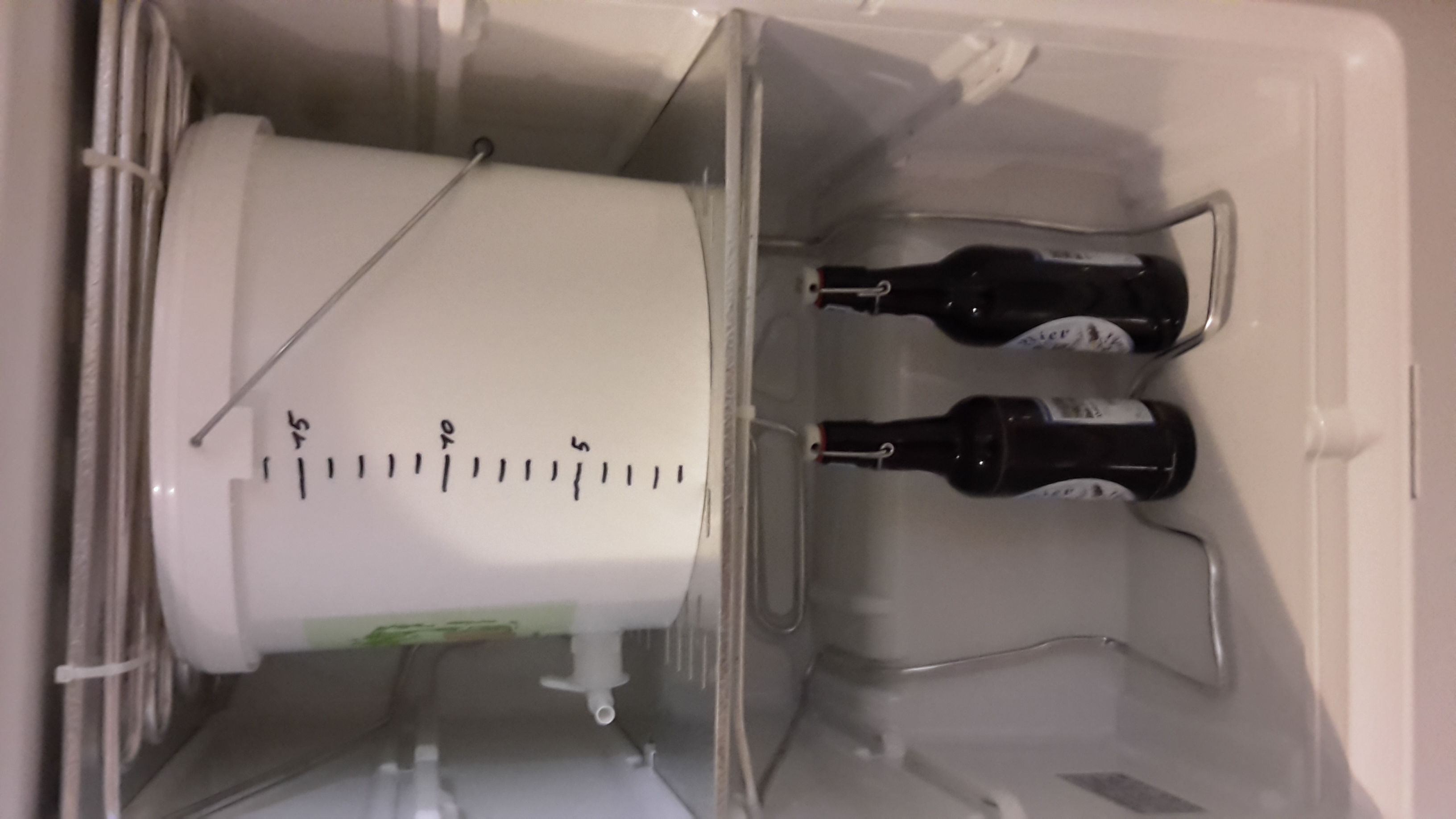 Mein Umgebauter Tiefkühlschrank. Es passen knapp 40l in Flaschen rein oder eben der Gäreimer und ein paar Flaschen.