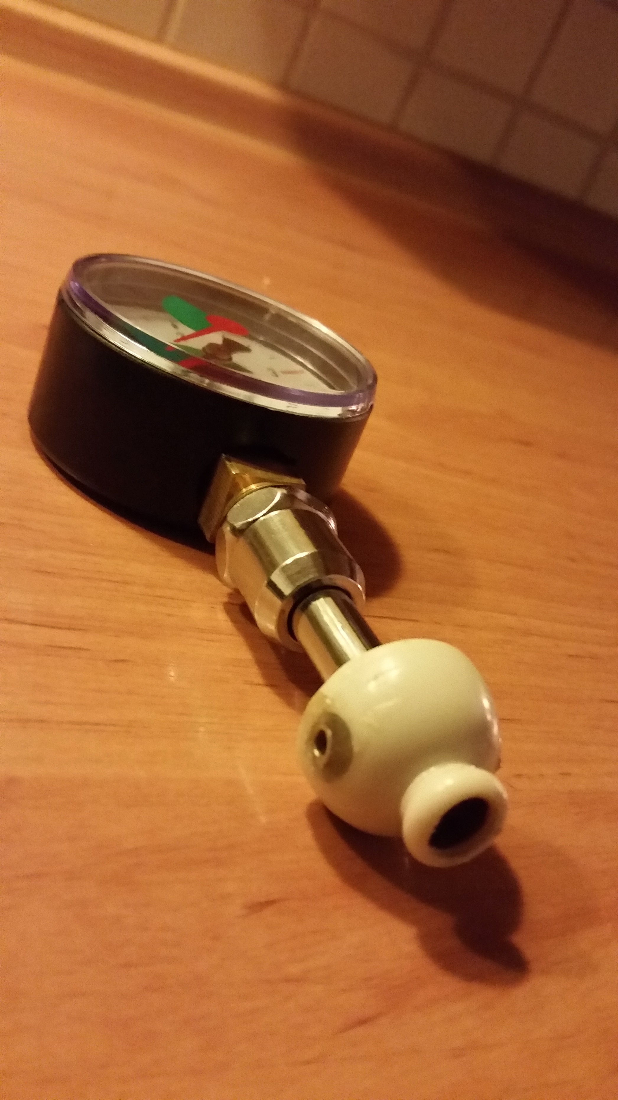 und der mir - als Anfänger - nicht bewussten Problematik der Fläschengärung und dem dort enstehenden Druck habe ich mir 3 Manometer besorgt und angefangen den ersten nachzubauen. Klappt soweit alles prima, ist aber nur vorbereitet und nicht final zusammengesteckt und geklebt.