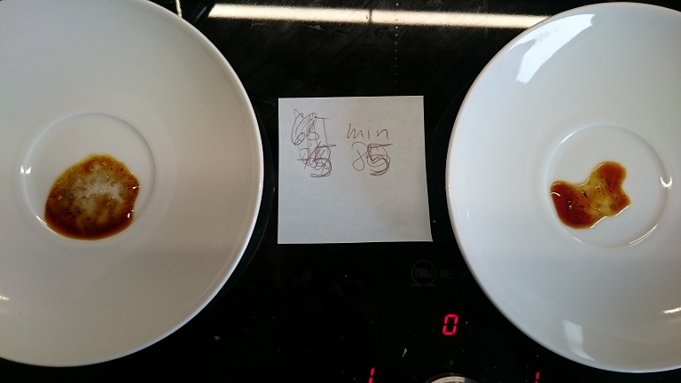 nach 120 min Abbruch. "Sieger" ist die Polenta, die Probe auf Seite der Cornflakes ist noch tief violett... da hat sich bei der Jodprobe optisch quasi gar nichts getan!