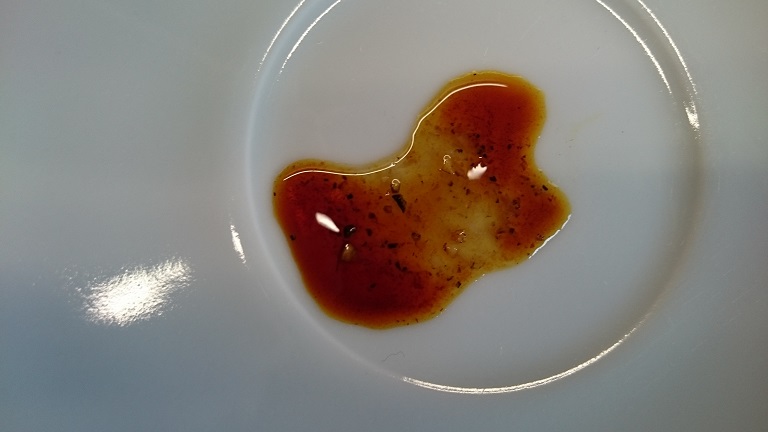 Nach 135 Minuten habe ich dann schließlich abgebrochen, Die Jodprobe an sich geht langsam Richtung Jodnormal, im Detail sieht man jedoch, dass die Maisgries-Bestandteile immer noch tief violett anschlagen (=Stärke).