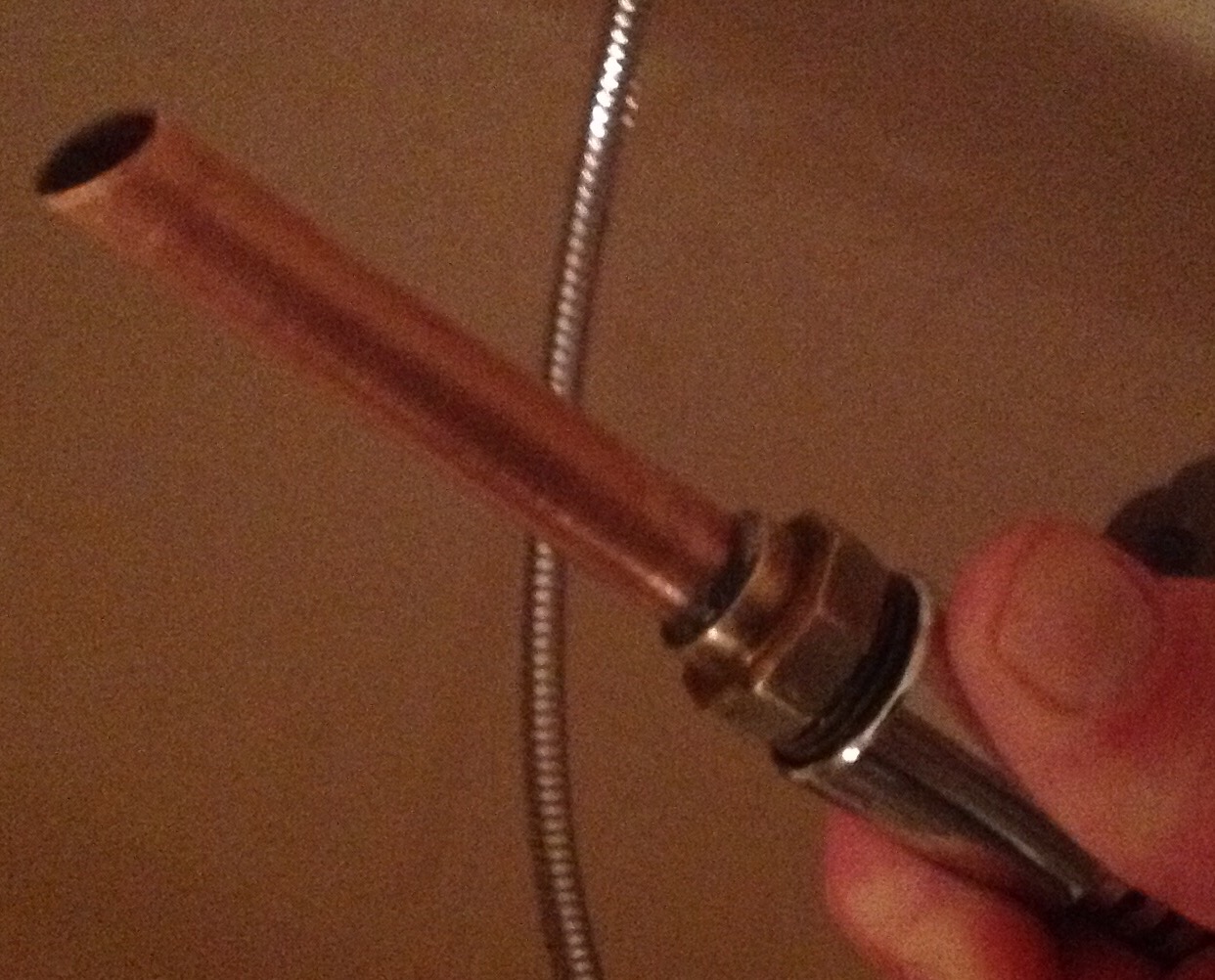 Rechts im Bild hängen die durch Mitkochen keimarm gemachte Kühlspirale und der Schwanenhals während der Wirlpool läuft.