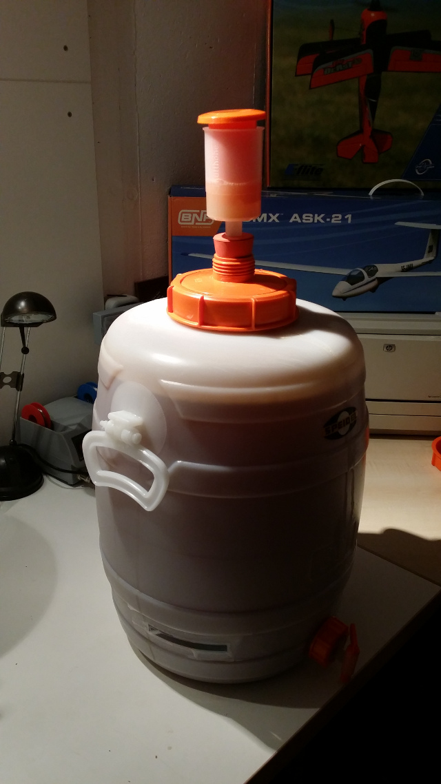 Beim Einmaischen kommen dann Neuerung 2, 3 und 4 ins Spiel: Mein Proficook (rundes Q-Siegel, ohne Macke beim Aufheizen bis jetzt) und mein Rührwerk und Leuterator mit Hahn von Adams Hardware. Das erleichtert die Maischearbeit wirklich erheblich! Außerdem ist Läutern ohne Umschöpfen echt eine bequeme Sache. Uns sieht außerdem auch noch klasse aus!