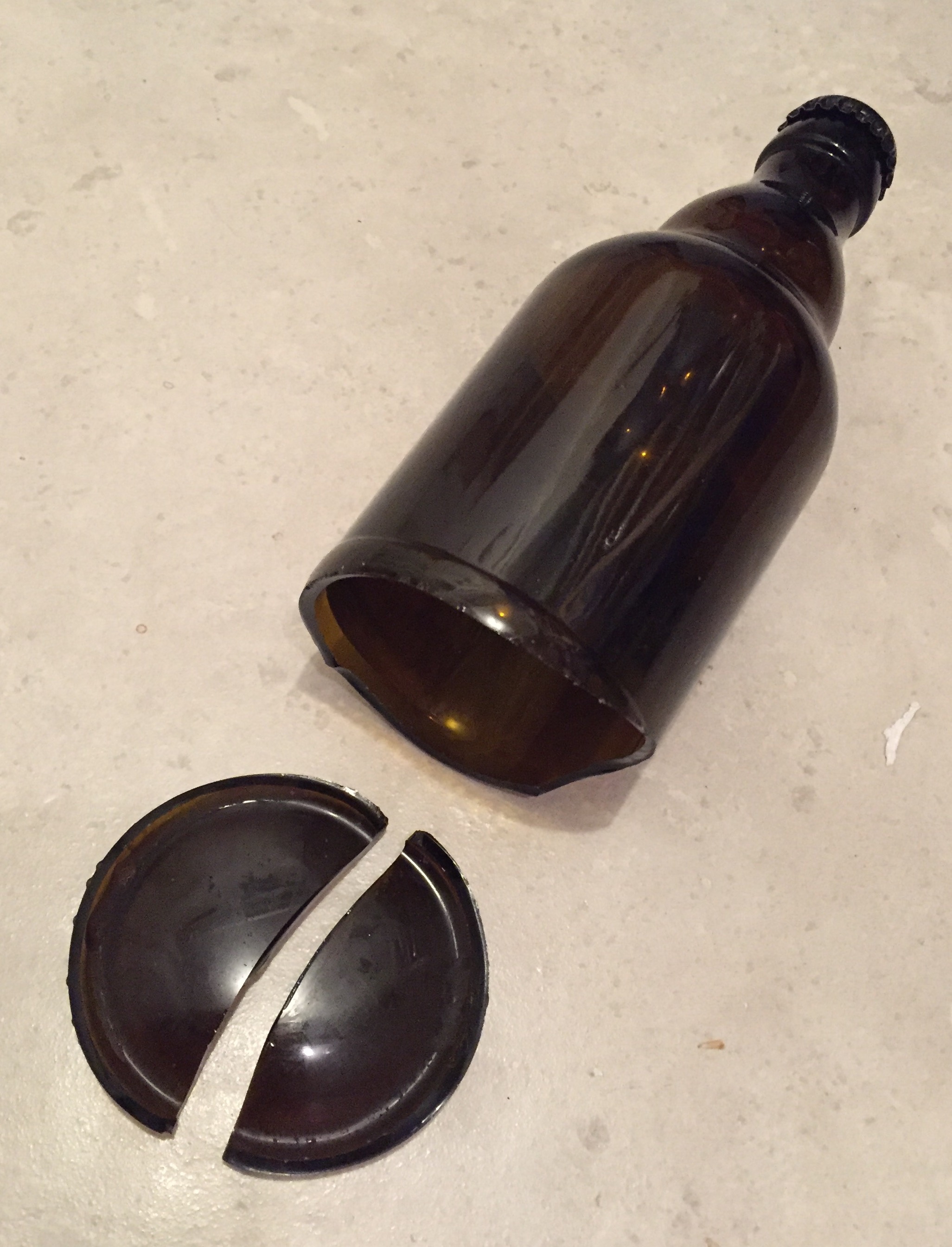 Meine Vermutung - es gab am Glas keine offensichtlichen Schwachstellen und abblasen hat nicht funktioniert, da war der Druck auf den Flaschenkörper überall gleich und so war kein Splitter größer als ein Sandkorn.