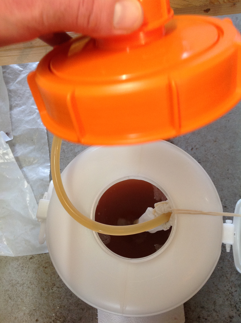 Sie wird einfach direkt nach dem Einsatz abgestrahlt mit heißem Wasser aus der Leitung. Dazu benutze ich ein Gadet welches ich mir schon zum ersten Sud zusammengelötet hatte.