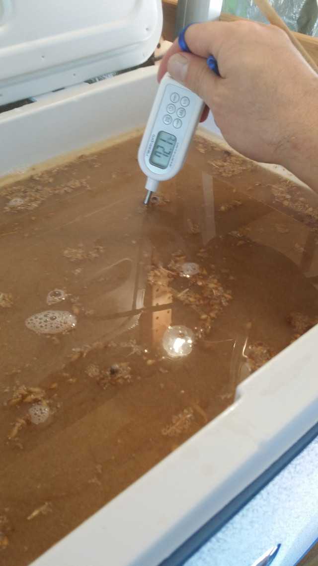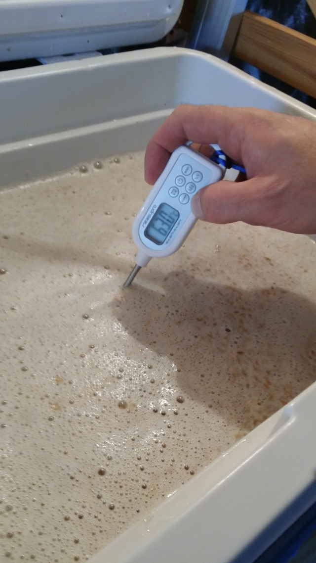 Einmaischtemperatur fast getroffen. Sollte eigentlich ein Grad mehr sein.