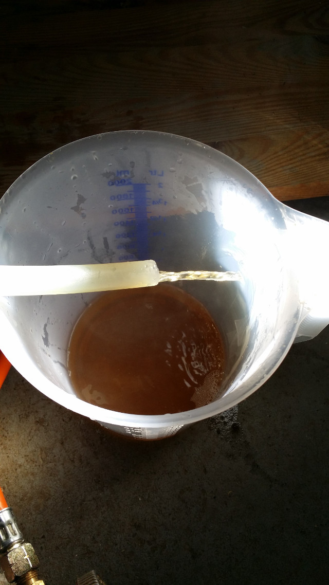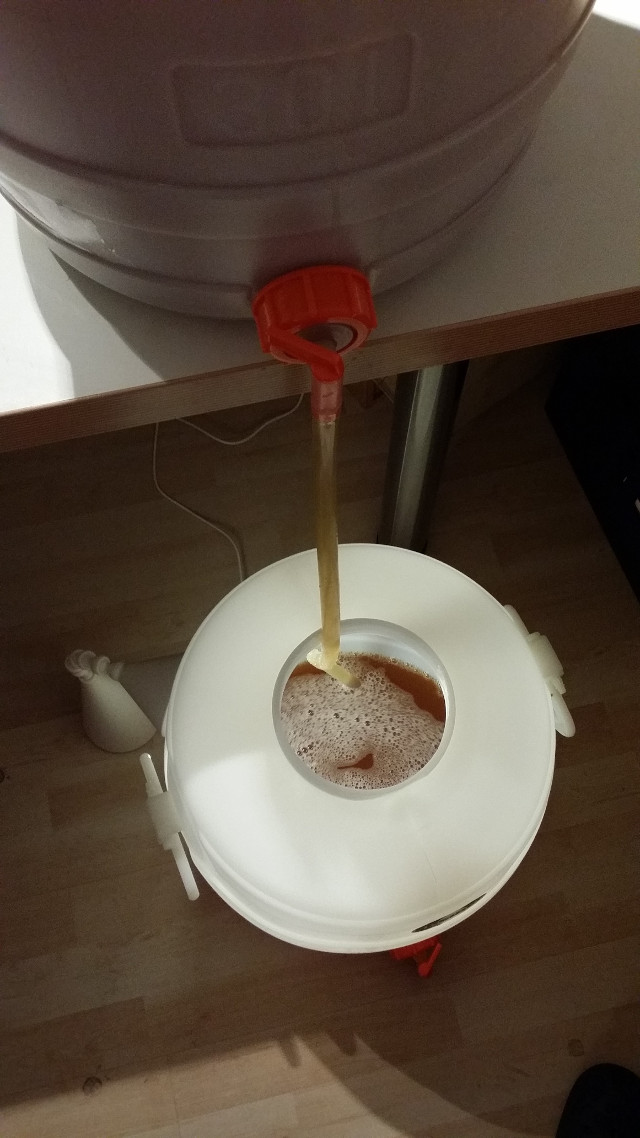 Dann Vorschießen beim Läutern. Hier nach Liter 4 dann schon schön klar.