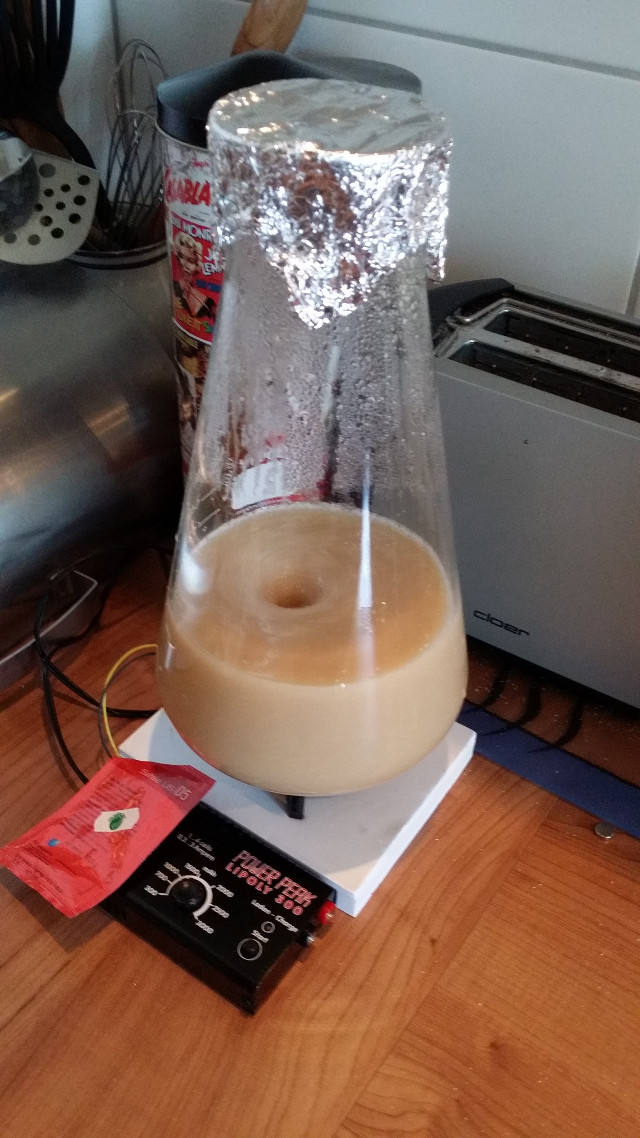 Die SVP am kommenden Nachmittag. Angekommen war die Hefe schon am morgen, aber sie sollte schon ordentlich losgelegt haben bevor ich die SVP entnommen habe.