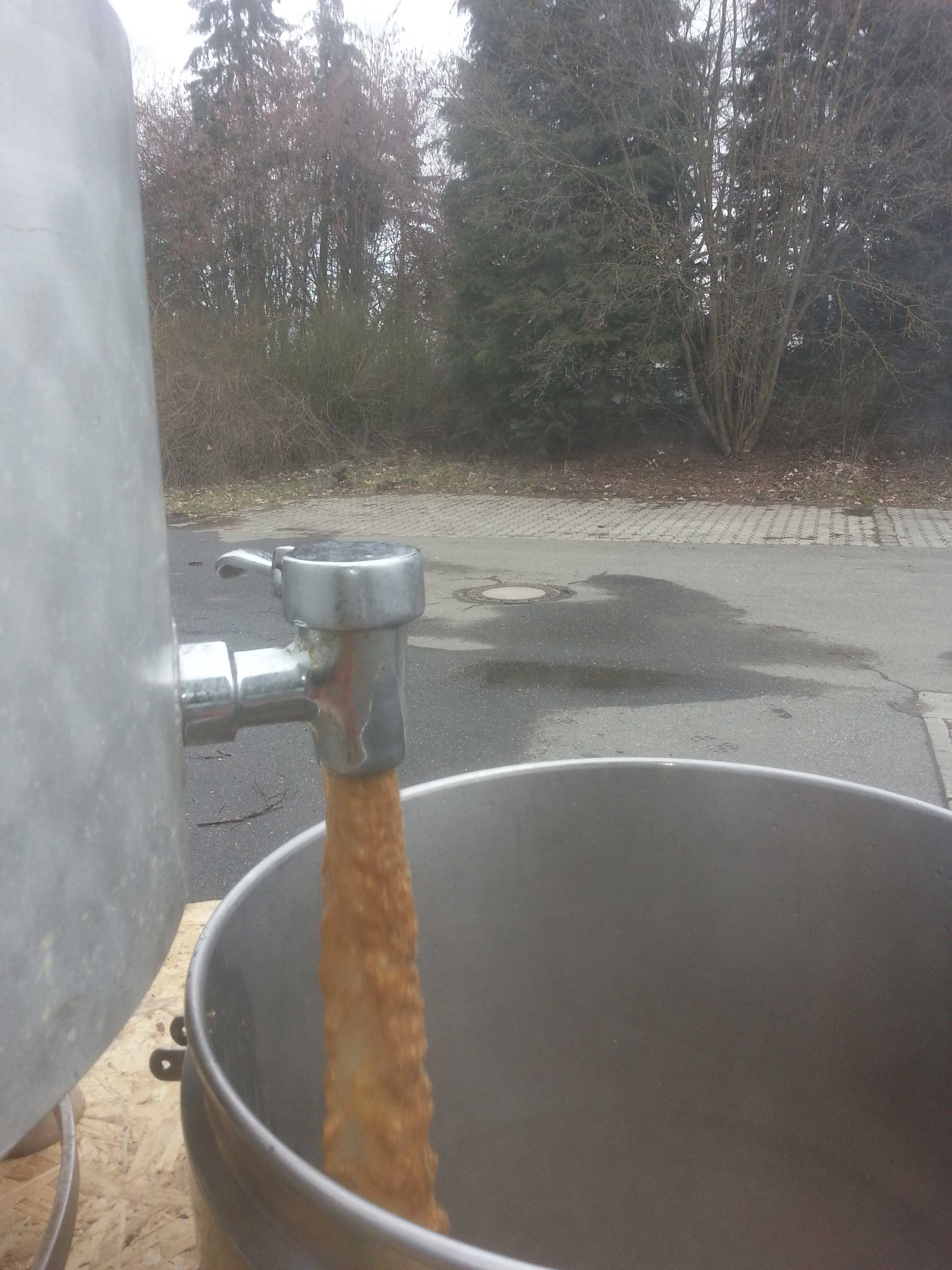 VErbesserungswürdig: Nachgussbereitung. Wir hatten kochendes Wasser im Läuterbottich (isolierter Milchtank) zwischengelagert und dann vor dem Abmaischen in Hobbocks umgefüllt. Bis zu den Nachgüssen war es schon wieder zu kalt )-: DA muss ich mir noch was einfallen lassen.