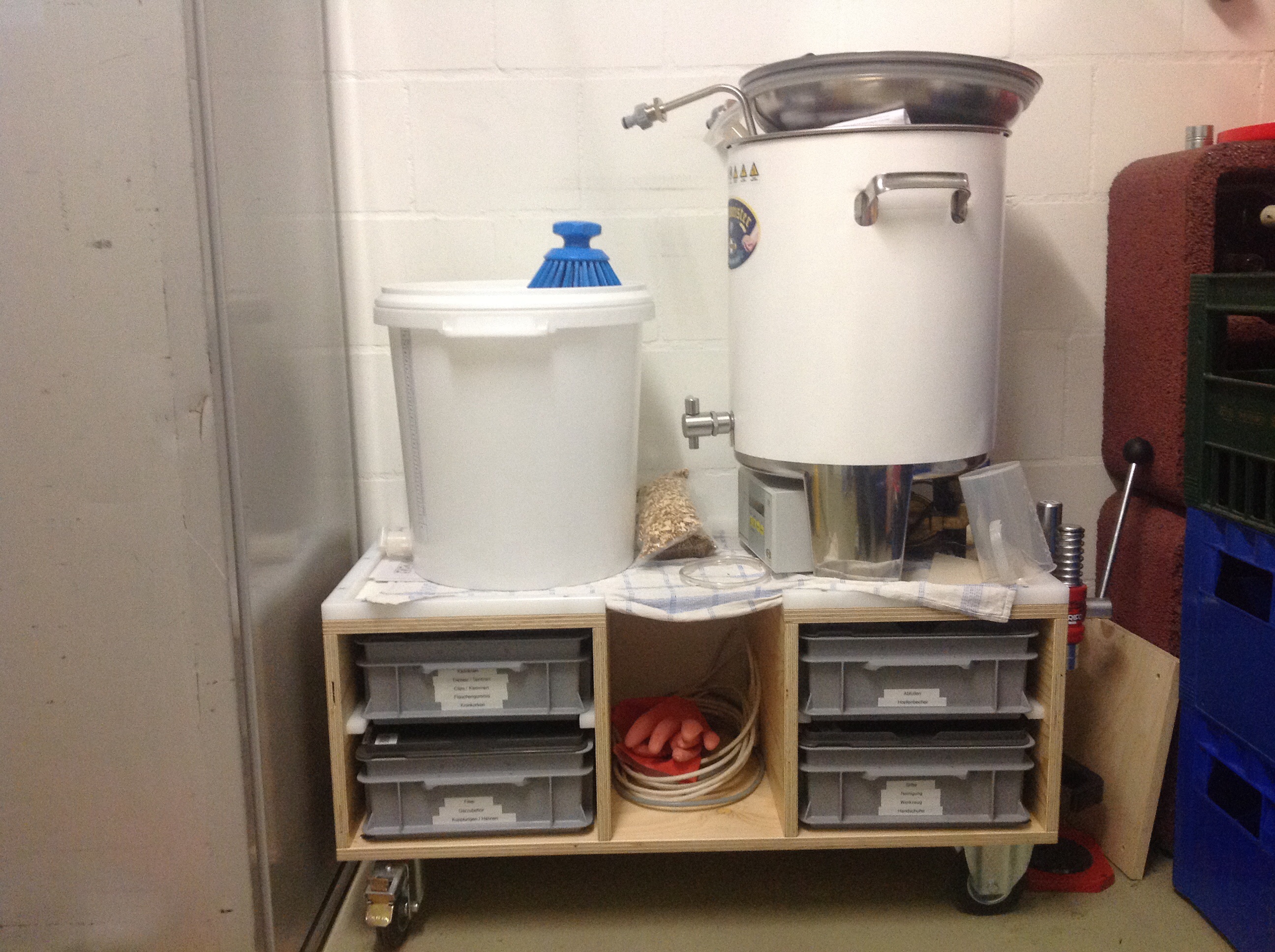 2. Eine einfache Möglichkeit, die Brauutensilien kompakt auf die zum Brauen genutzte Terrasse zu schaffen.