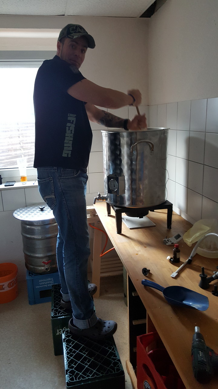Ist der Beerfest voll, kommt er auf einem Hund, auf dem ich ihn zum Kochen rausrollen kann.
