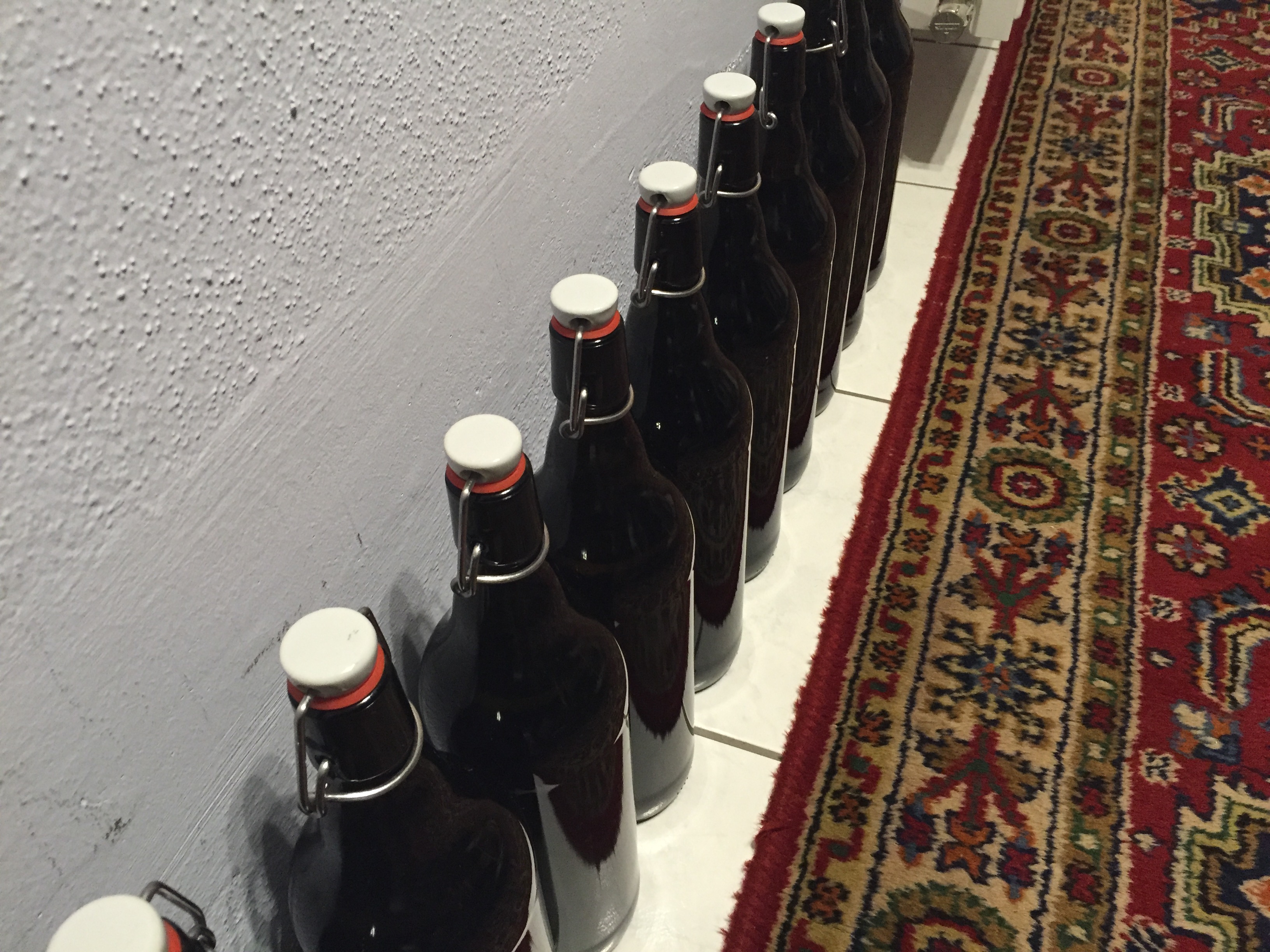 Habs in 1l-Bügelflaschen mit jeweils 10g gelösten Haushaltszucker in abgekochten Wasser abgefüllt. Jetzt heißt es wieder sich in Geduld üben und hoffen, dass es auch schmeckt! :Angel