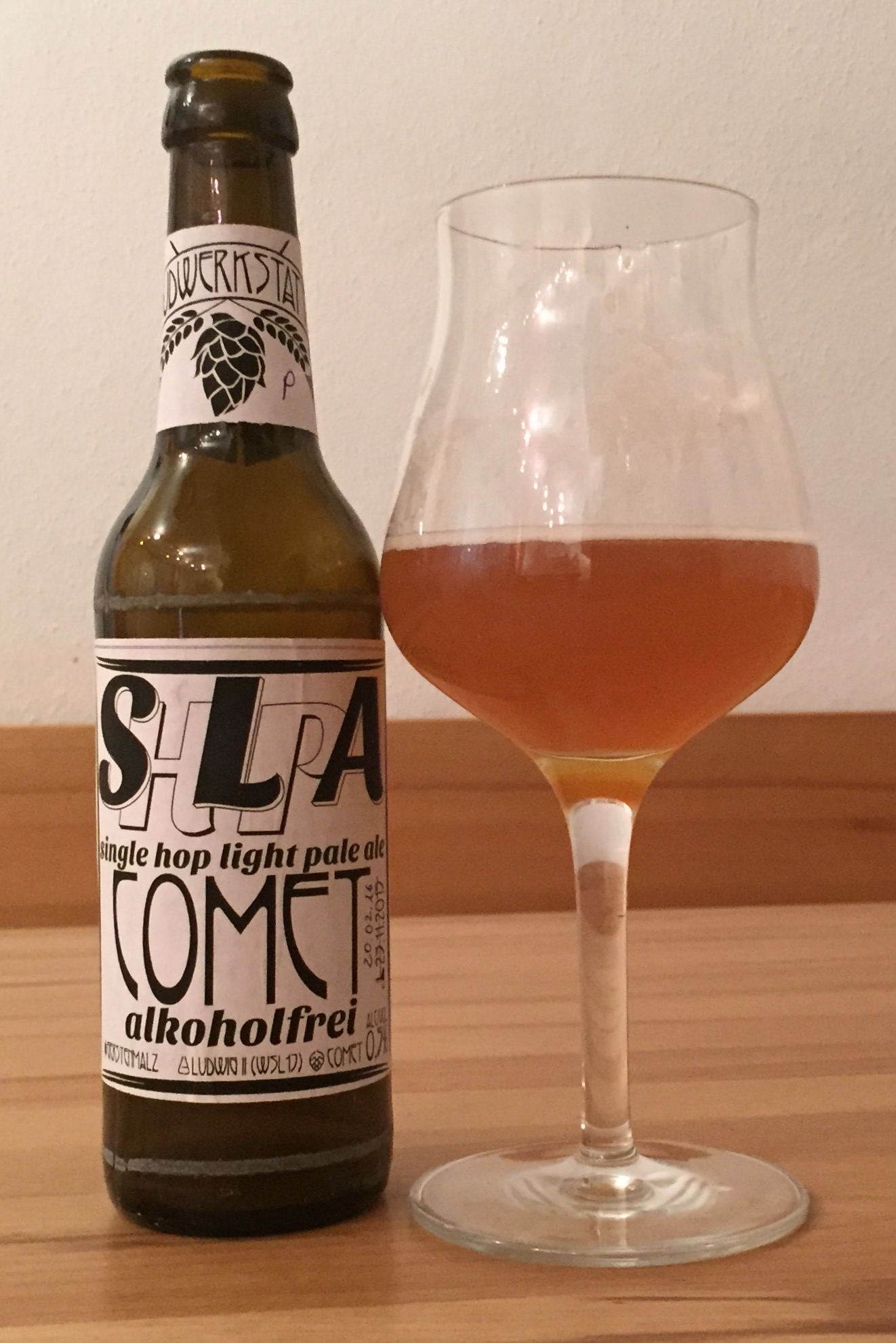 Ca. 0,5% Alk. Ein Autofahrerbier also. Merkt man aber kaum. Sehr hopfenfrisch (Comet) und im Abgang stiltypisch bitter. Mit der Ludwig II vergoren. Das zweitbeste Alkoholfreie, was ich im Leben je getrunken hab (und aufgrund einer früheren Medikamentenbehandlung hab ich so einige durch). Etwas mehr Körper hätte das SHLPA auf den ersten Platz gehievt, Alk. ist nun mal ein Geschmacksfaktor, der bei Mangel kompensiert werden will. Trotzdem, klasse Stoff, könnte mich dran gewöhnen.