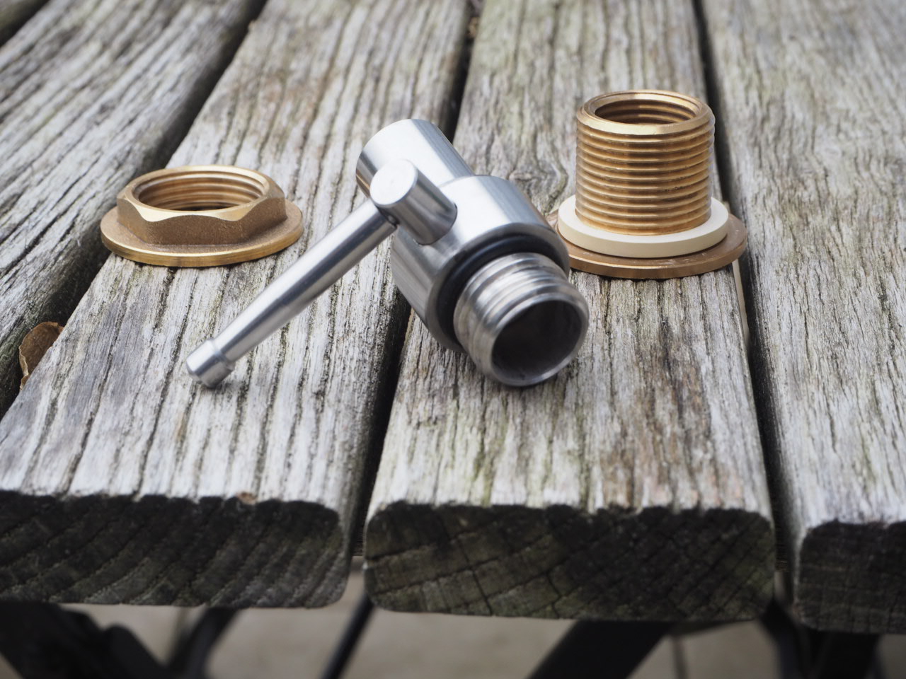 Da ich von dem Eimer vor dem Abfüllen nochmals umschlauche, habe ich keine Auslaufhähne installiert.