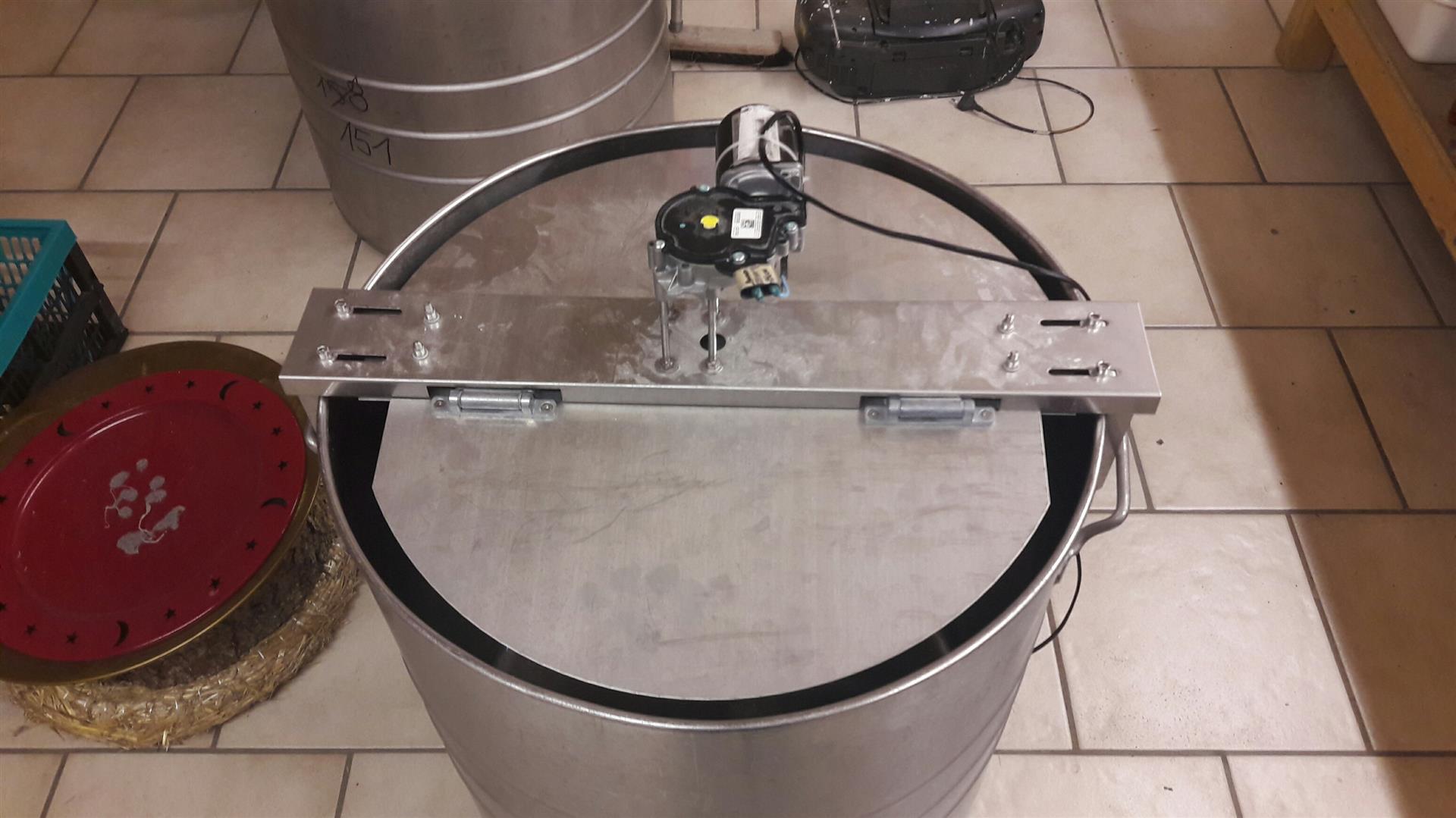So kann ich nach wie vor das Rührwerk auf dem kleinen Topf mit 60 Liter Ausschlage hernehmen.