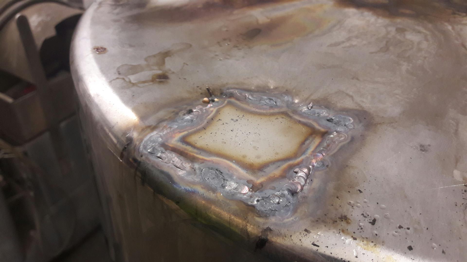 Beim alten Kessel wurde er nutzlose Hahn weggeschnitten und ein Blech draufgeschweißt.