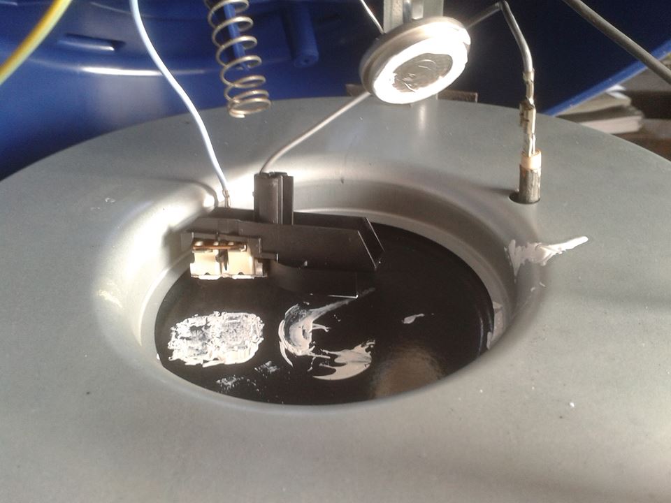 Auch wenn mir scheinbar keiner antworten kann oder will habe ich mal ein Bild vom Inneren des Kochers gemacht. Das weiße sieht aus wie Kleber, hat allerdings die Konsistenz von Tippex. Ansonsten lag alles mehr oder weniger lose drin.