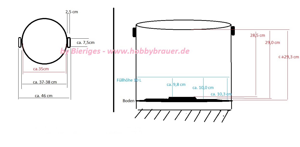 Hier ein paar Bilder: Ich habe den Einkocher mit Wasser befüllt und auf max gestellt. Die üblichen Heizraten von 1 Grad / Minute gelten hier auch. Was aber schon auffällt ist, dass die Heizspirale anscheinend nur unter dem ersten Kreis des Bodens sitzt. Normalerweise sitzt diese ja im mittleren Ring. Evtl ist das der Unterschied zu den 1800W Kochern. Wallendes Kochen war ebenfalls kein Problem. Demnach kann ich meinen Tauchsieder nun nur noch als "Beschleuniger" einsetzen. Schön ist ebenfalls, dass ich diesen Kocher ohne Umbauten automatisieren kann, da dieser "an und aus" versteht. Die Zeitschaltuhr ist ein wenig anders als beim ProfiCook. Hier muss man warten, bis die gewünschte Temperatur eingestellt ist und erst dann kann der Timer manuell gestellt werden. Die Temperatur wird dann aber +/- 2 Grad gehalten. Der Plastikhahn wird noch gegen einen Edelstahlhahn getauscht.