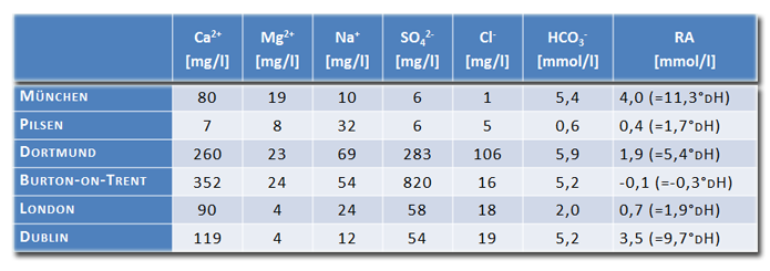 Hier eine kleine Übersicht über Wasserwerte an einigen bedeutenden Brauorten, u.a. auch Pilsen. Edit: Mit deinen Werten komme ich auf eine RA von ca. 5 °dh. Das ist zu hoch für ein Pils, außerdem stimmen die Ionenprofile von deinem Wasser und Pilsner Wasser nicht über ein.