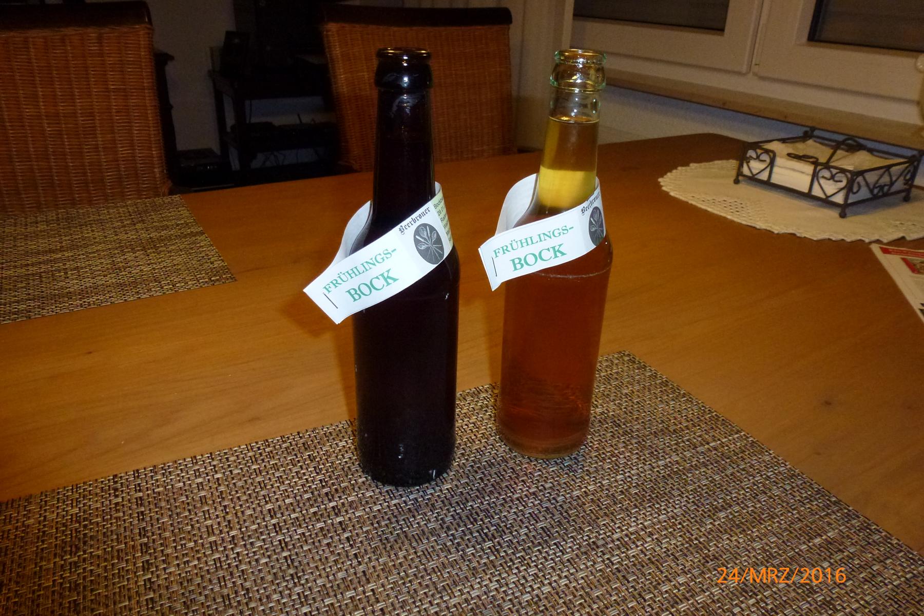 Ich habe daher kurzerhand bei meinem diesjährigen Frühlingsbock (Ruthards Rezept - Danke Ruthard dafür) zwei Flaschen in Klarglasflaschen abgefüllt und diese bewusst einige Tage ins Tageslicht gestellt.