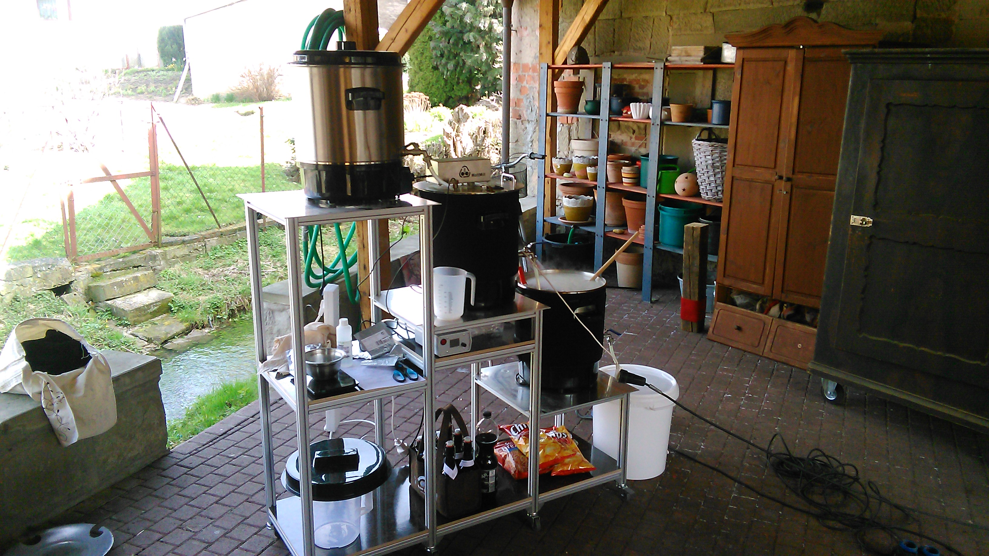 Gerade wieder vier Sude auf meiner neuen Anlage gebraut. Macht echt Spaß wenn drei Töpfe auf einmal laufen.