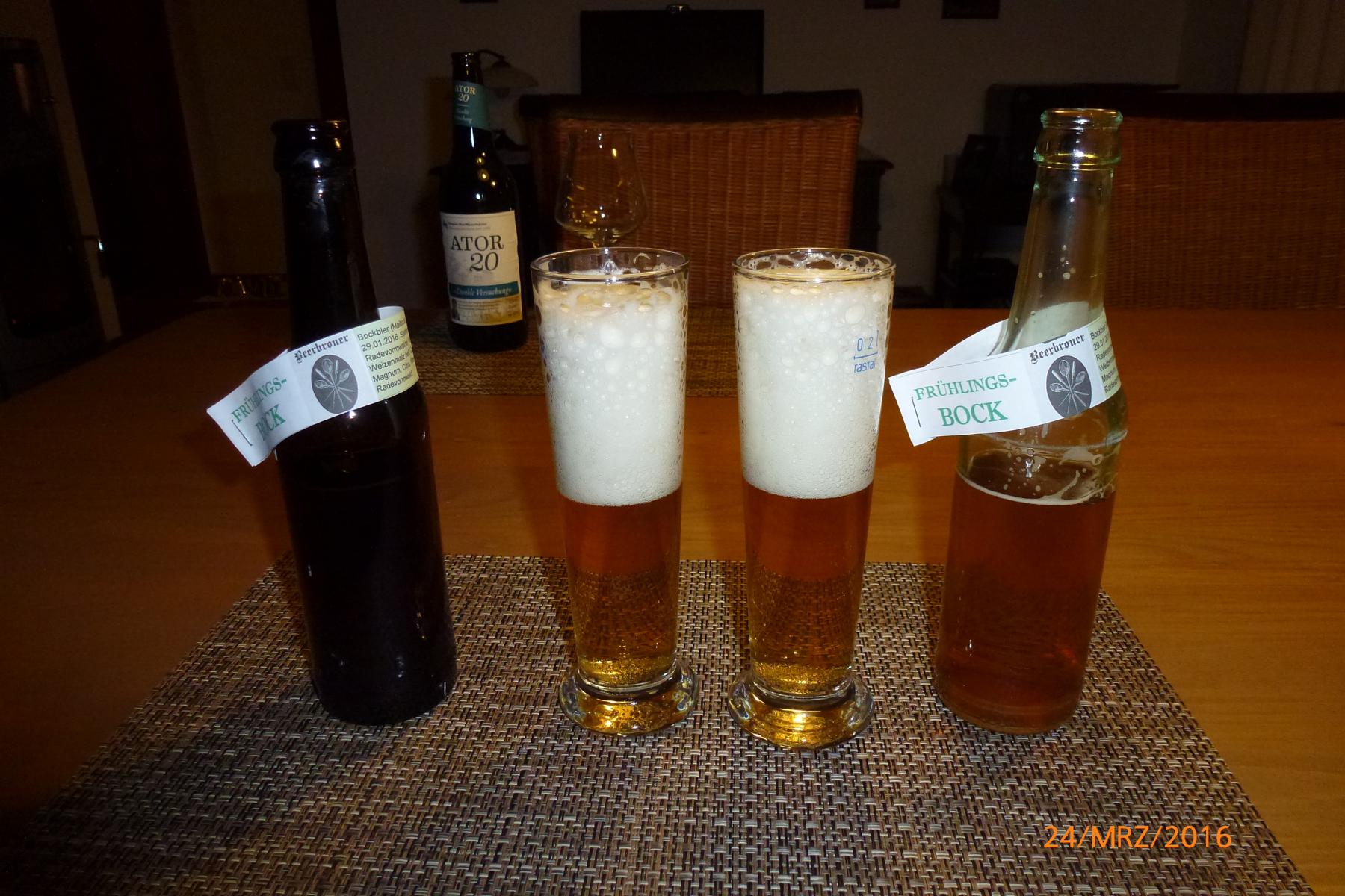Ich habe daher kurzerhand bei meinem diesjährigen Frühlingsbock (Ruthards Rezept - Danke Ruthard dafür) zwei Flaschen in Klarglasflaschen abgefüllt und diese bewusst einige Tage ins Tageslicht gestellt.