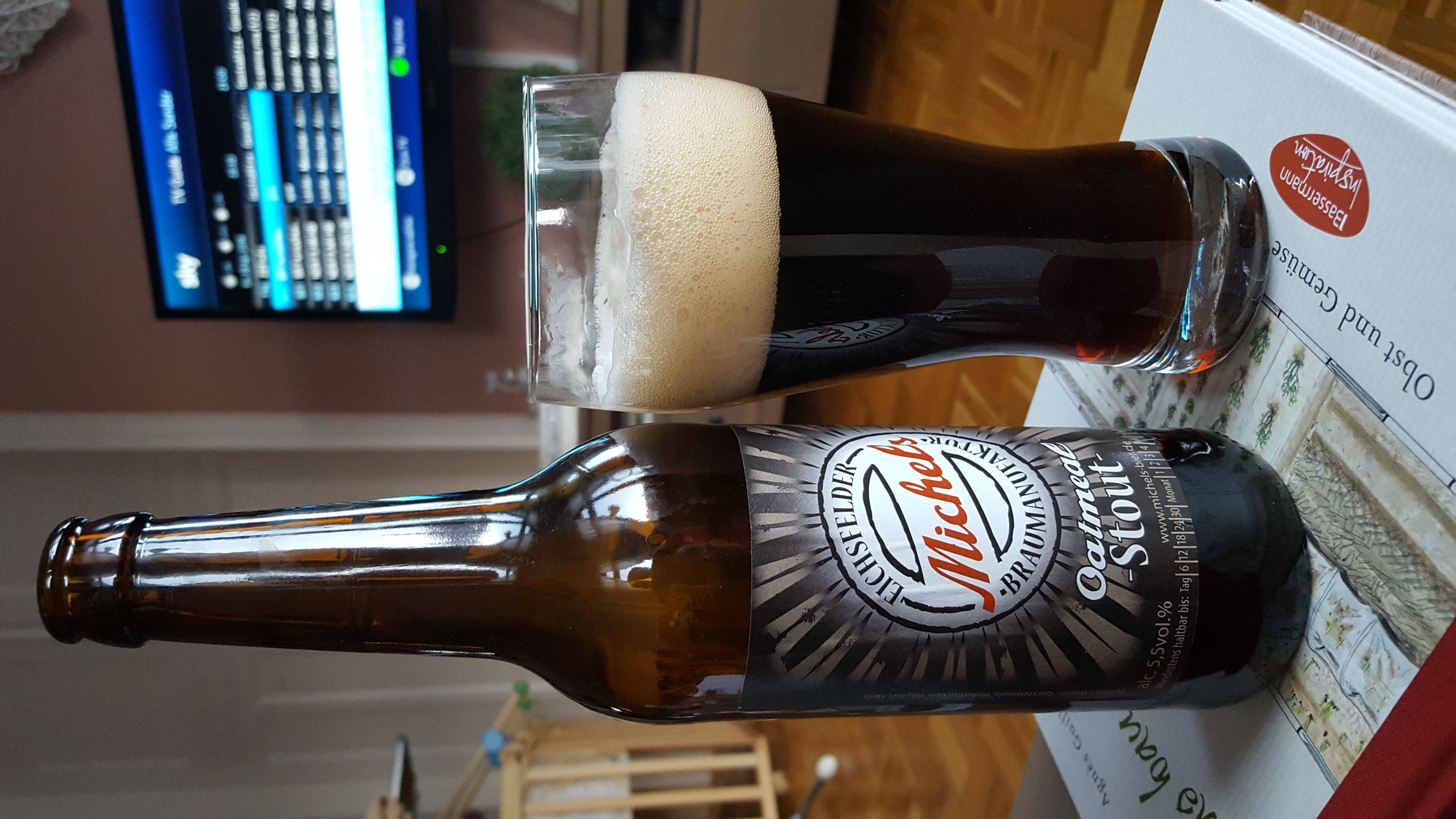 noch dieses hier ergattert: Michels Stout (ebenfalls ein alkoholisches Malzgetränk). Zutaten: Wasser, Gerstenmalz, Haferflocken, Hopfen, Hefe.
