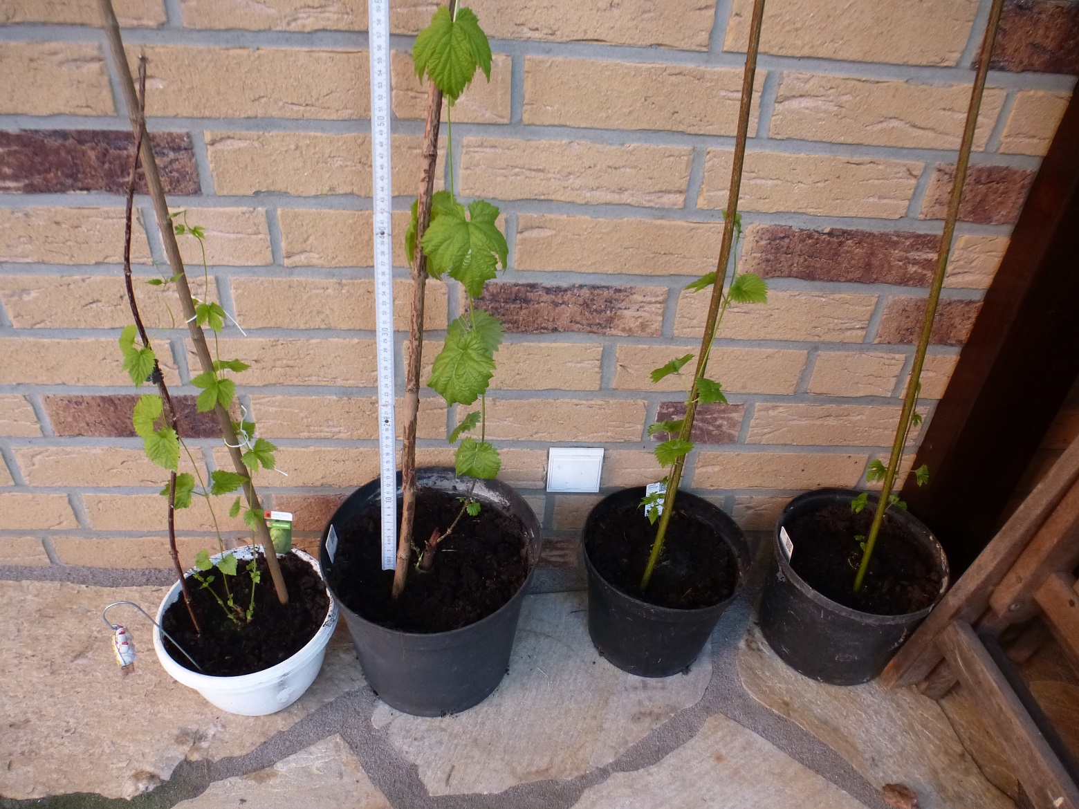 Letztes Jahr gepflanzt: 1 x Magnum, 1x Hallertau (Genaue Sorte unbekannt), 1x Perle