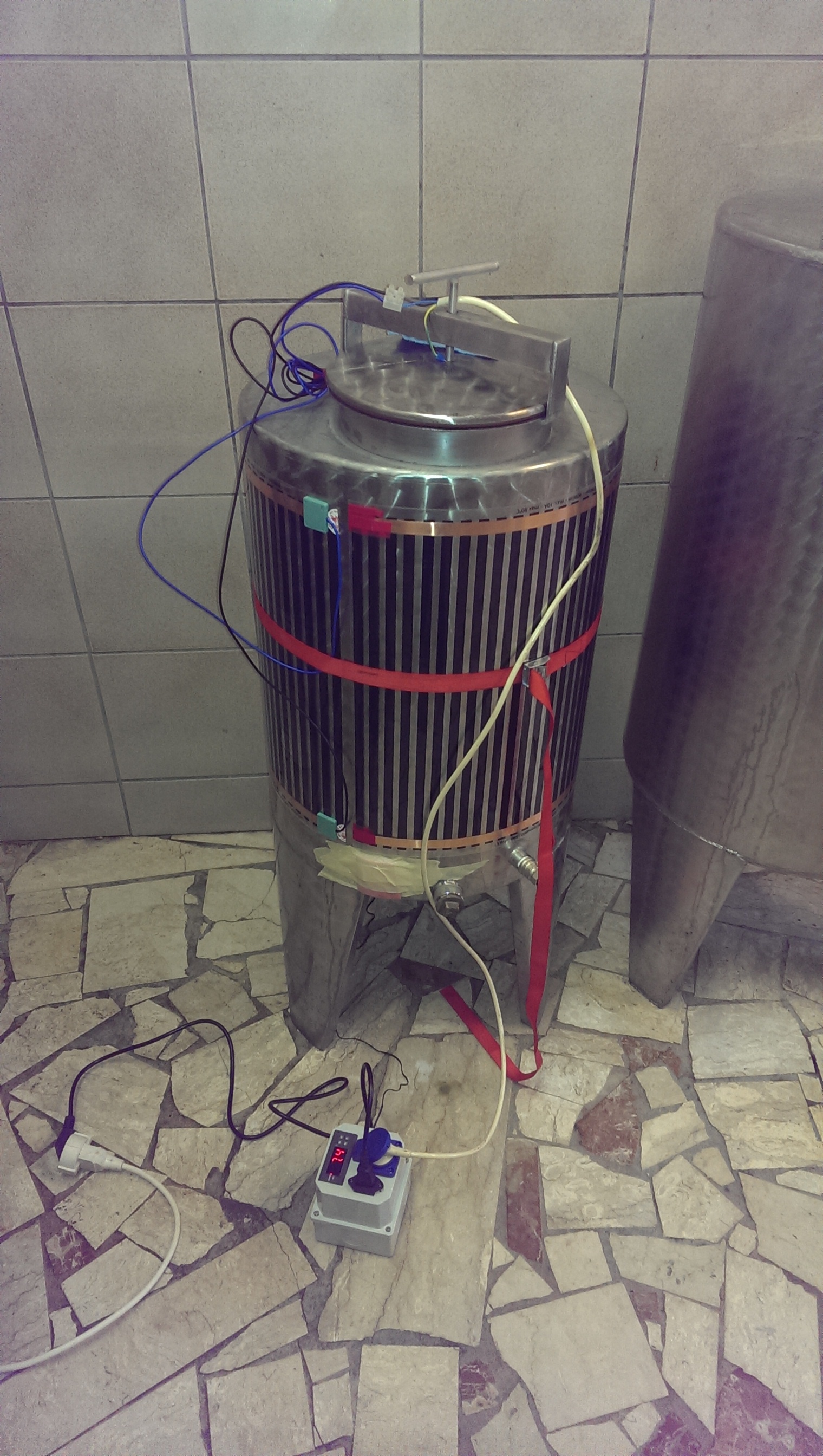 Ich hab eine Fußbodenheizung ums Gärfass drum. Danach kommt dann noch eine Isomatte aber dann sieht man auf dem Foto nix mehr ;)