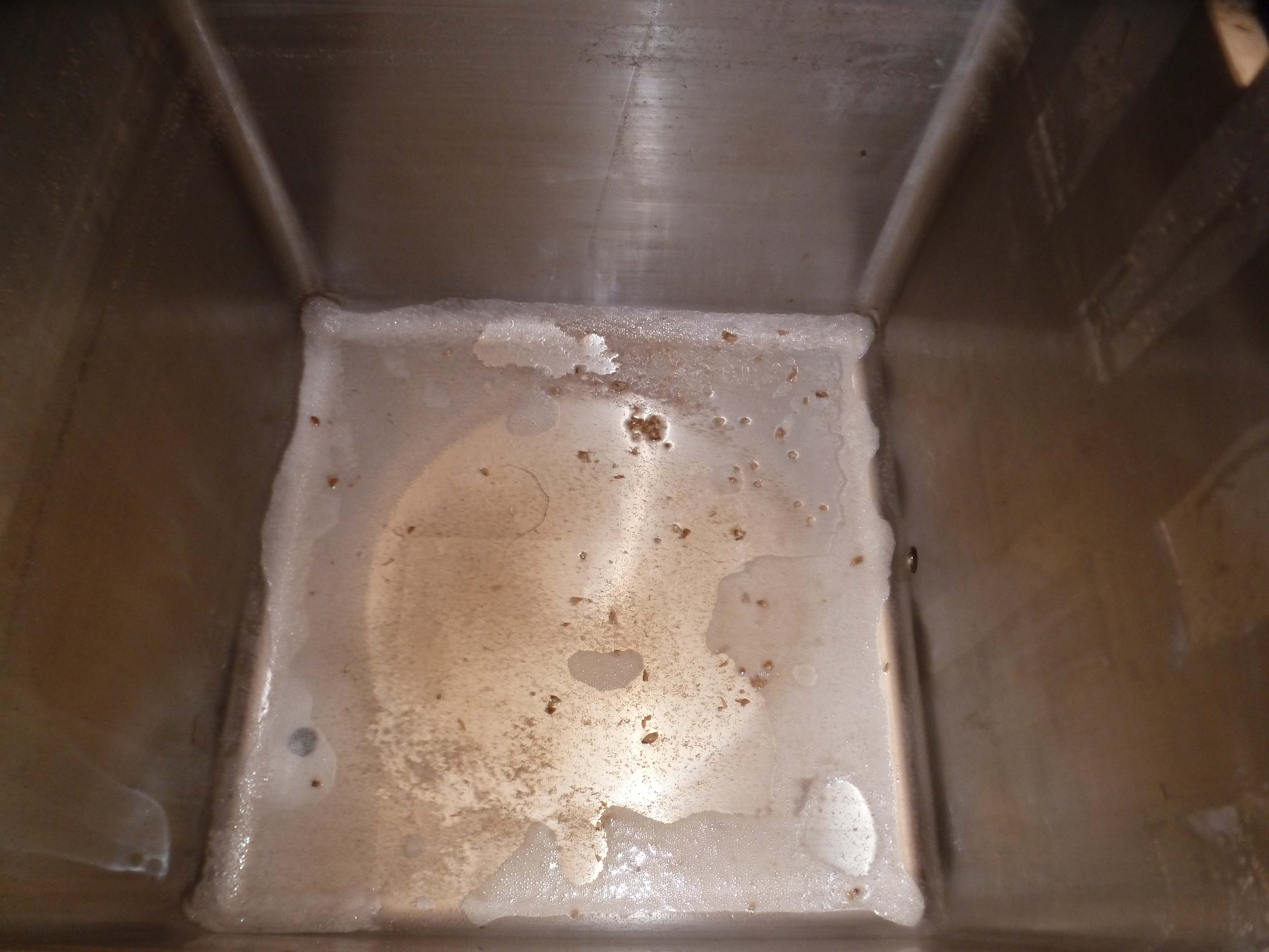 Das Reinigungsprogramm, zumal ohne Chemiemittel (man testet derzeit verschiedene Spülmaschinentabs zum Einlegen in die Hopfenbehälter des Brewie) und nur mit zimmerwarmem Wasser, konnte daher der Situation nicht ganz Herr werden.