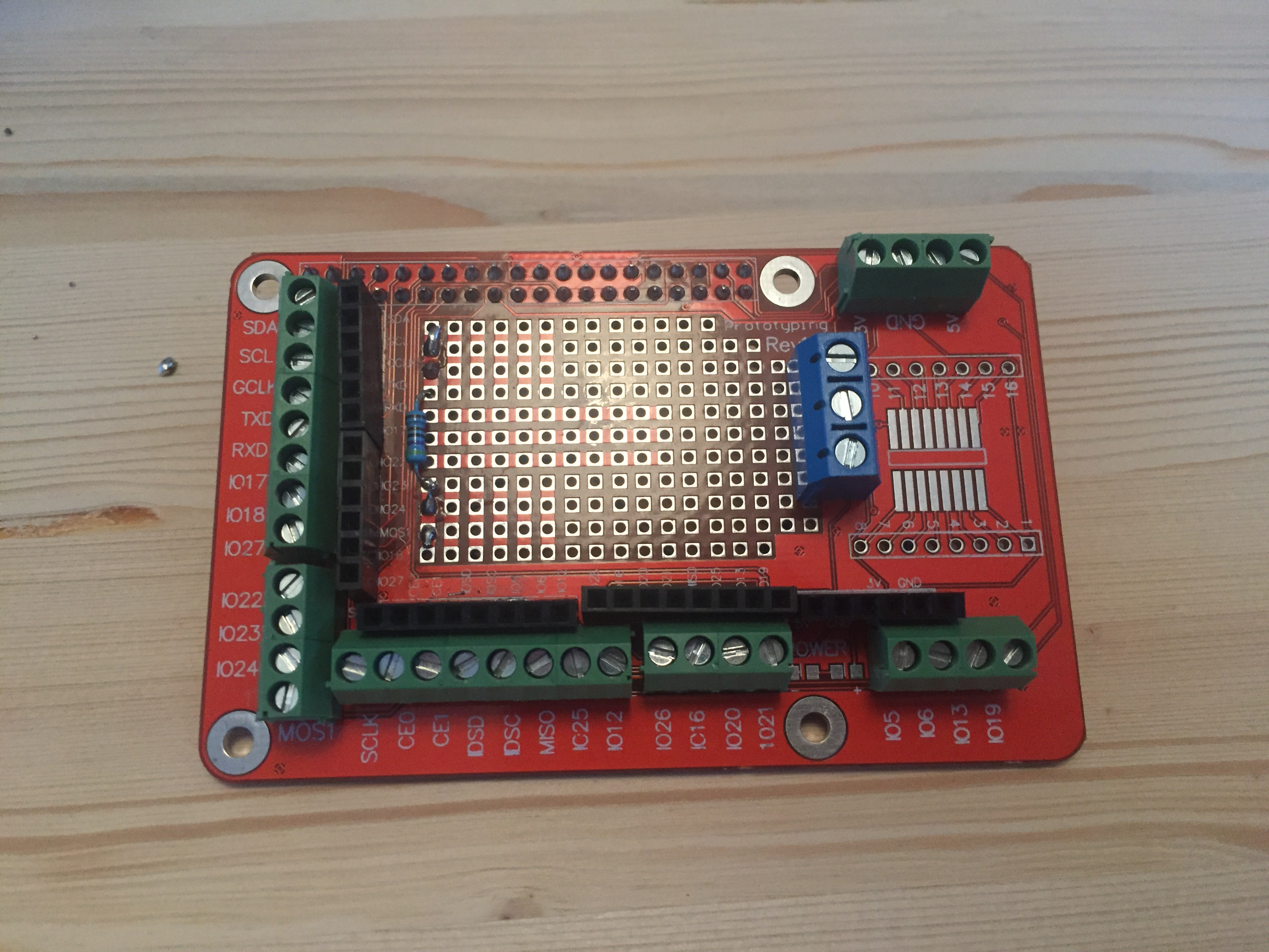 Erster Prototyp eines CraftBeerPI Shields. Im Moment ist nur der Widerstand für den 1Wire Bus drauf aber ein Transistor und Summer folgen noch.