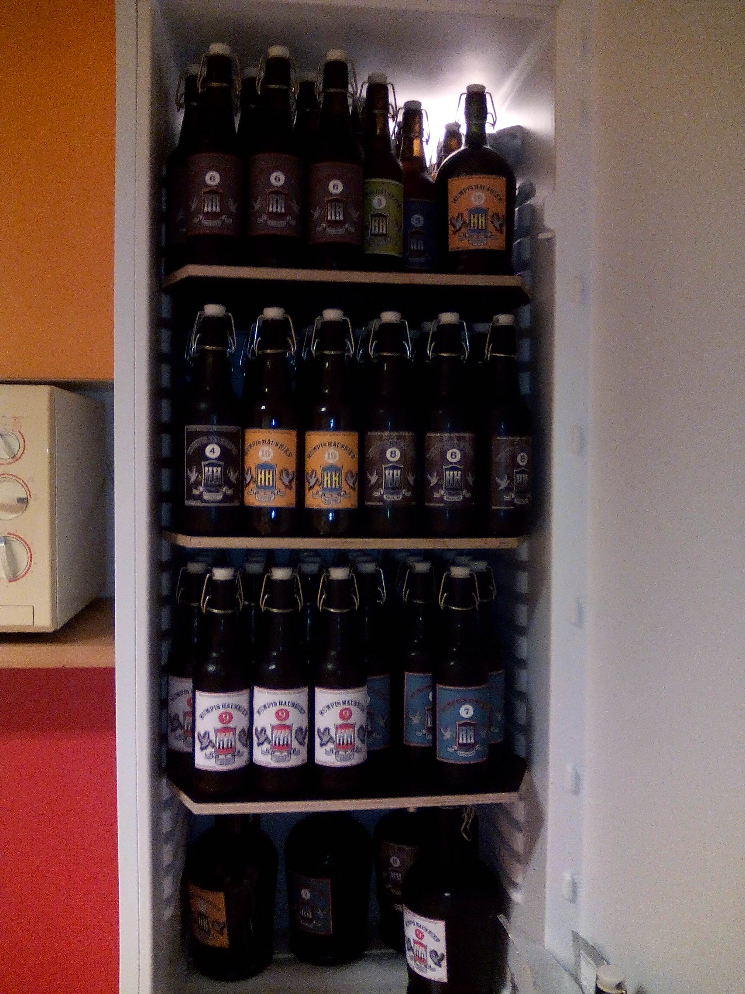 Eine Ablage drüber würden sicherlich 4 NC Kegs Platz finden. Ich bin mir nur nicht sicher, ob man einen Boden mit über 80kg belasten kann. Die Aufnahmen für die Platten sind ja sehr stabil.