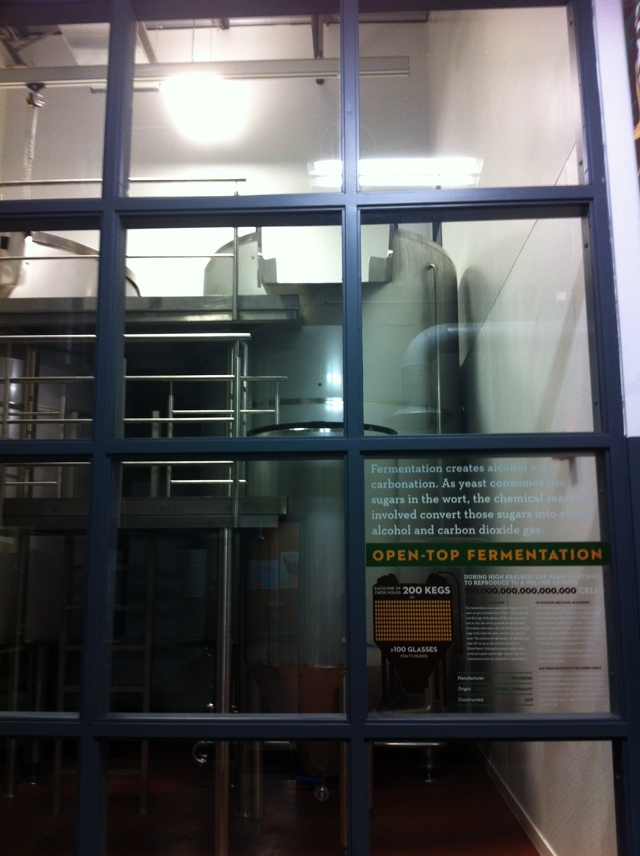Beim "praktischen" Teil der Führung durfte man ein paar Biere versuchen. Die junge Dame, die die Führung gegeben hat, hat dann die Biertypen etwas erläutert. Beim Hefeweissbier meinte sie, man solle mal riechen und ihr sagen, was das für ein Aroma sei. Tatsächlich kam aus der Gruppe der Ruf "Riecht irgendwie nach Banane", sie war freudig überrascht und stellte der Gruppe nun die Frage, ob wir wüssten, woher dieses Aroma käme.