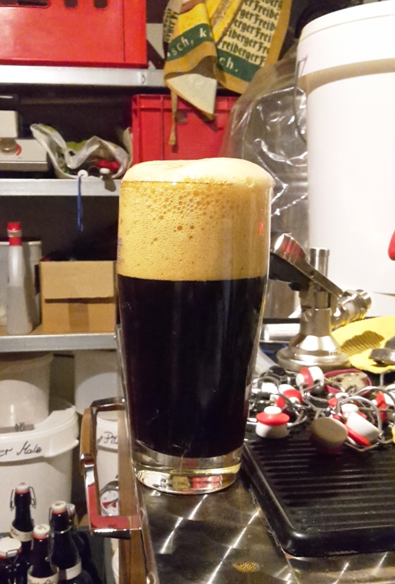Schöne goldene Farbe, malzig-süßlicher Geruch, feinporiger Schaum der sich mittelprächtig hält.