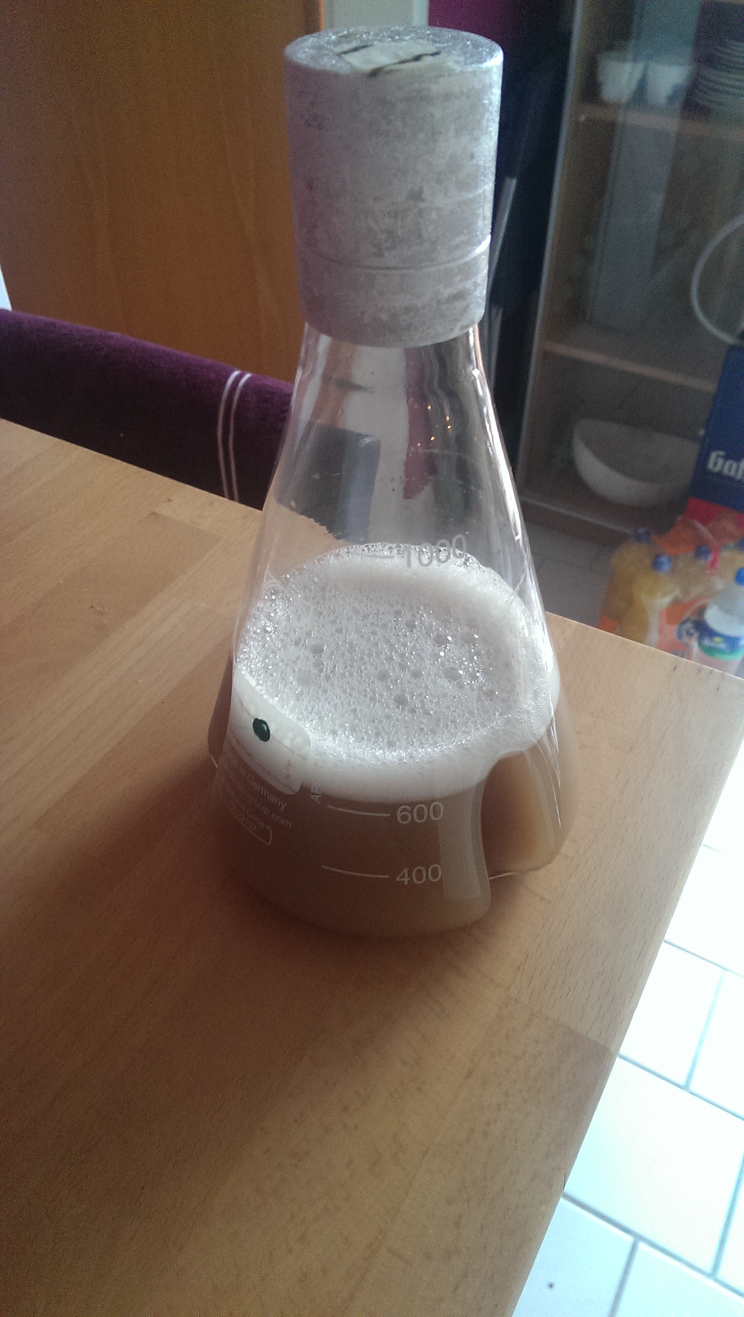 Da ich diesmal keinen Magnetrührer hatte, habe ich die Hefe alle paar Stunden kräftig geschwenkt. Hat gereicht.