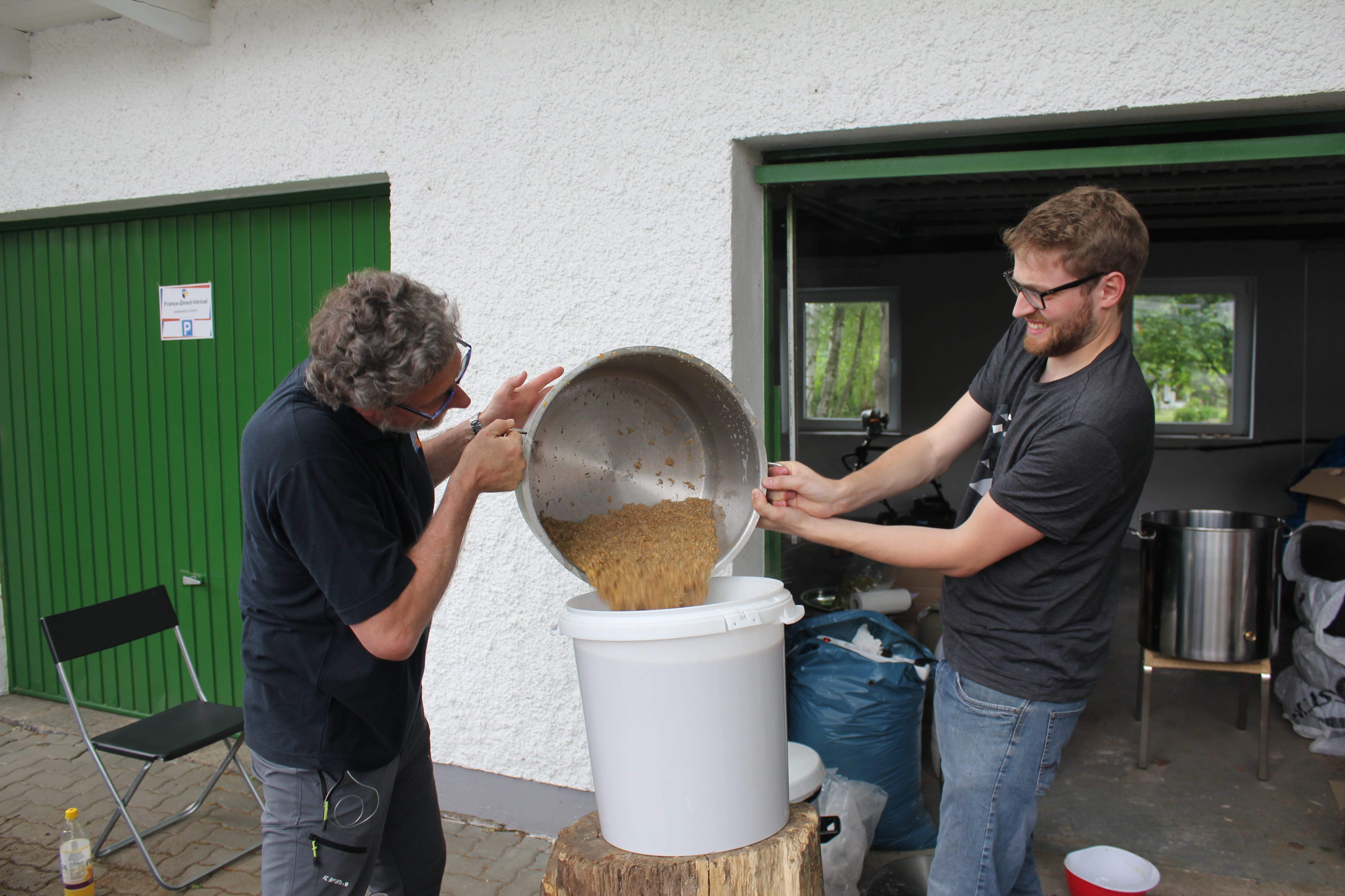 Einmaischen in 30 Liter Wasser mit 74°C ergibt 67°C. 90 Minuten Rast.