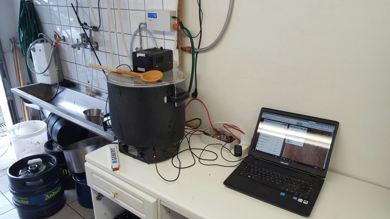 Du könntest so wie beim Einmaischen das Programm so einstellen, dass du manuell den nächsten Schritt starten musst.aalhuhnsuppe hat geschrieben:Beim Läutern bedarf es einer Pause, deutlich über die 15 Minuten Läterruhe hinaus. selbst bei einem Einkocher ist da doch (gefühlt) locker eine Stunde weg. Wäre ein Button für manuelle Pause hier nicht die einfachste Lösung? Gibts den schon und ich hab ihn nur übersehen? Ich dachte an einen oder mehrere kurze Töne am Ende der Läuterruhe und dann per Knopfdruck nach dem Läutern die automatik weiterfahren. Gerne auch ein physischer Knopf am Steuergerät (ich liebe Geräte mit vielen Lampen und Knöpfen....)