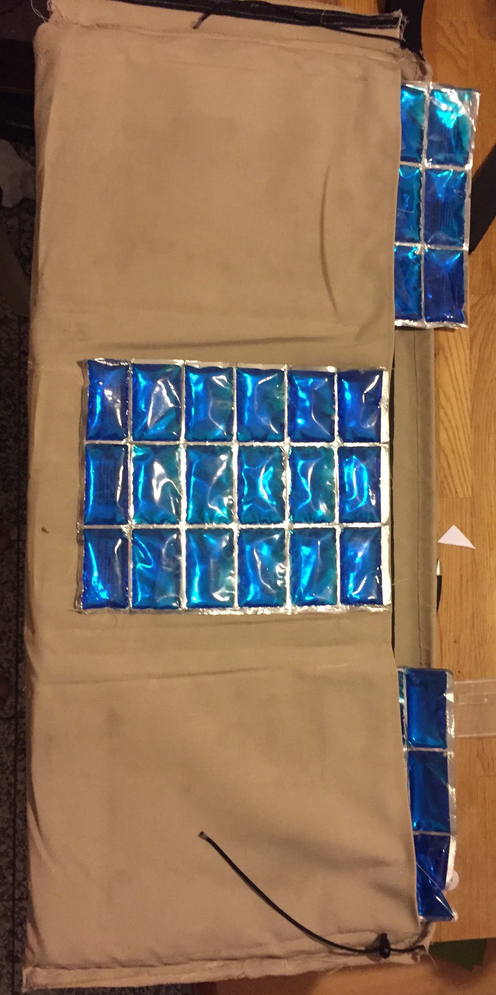 19mm Armaflex + 3 flexible Kühlakkus eingenäht in eine schicke Hülle aus Markisenstoff.