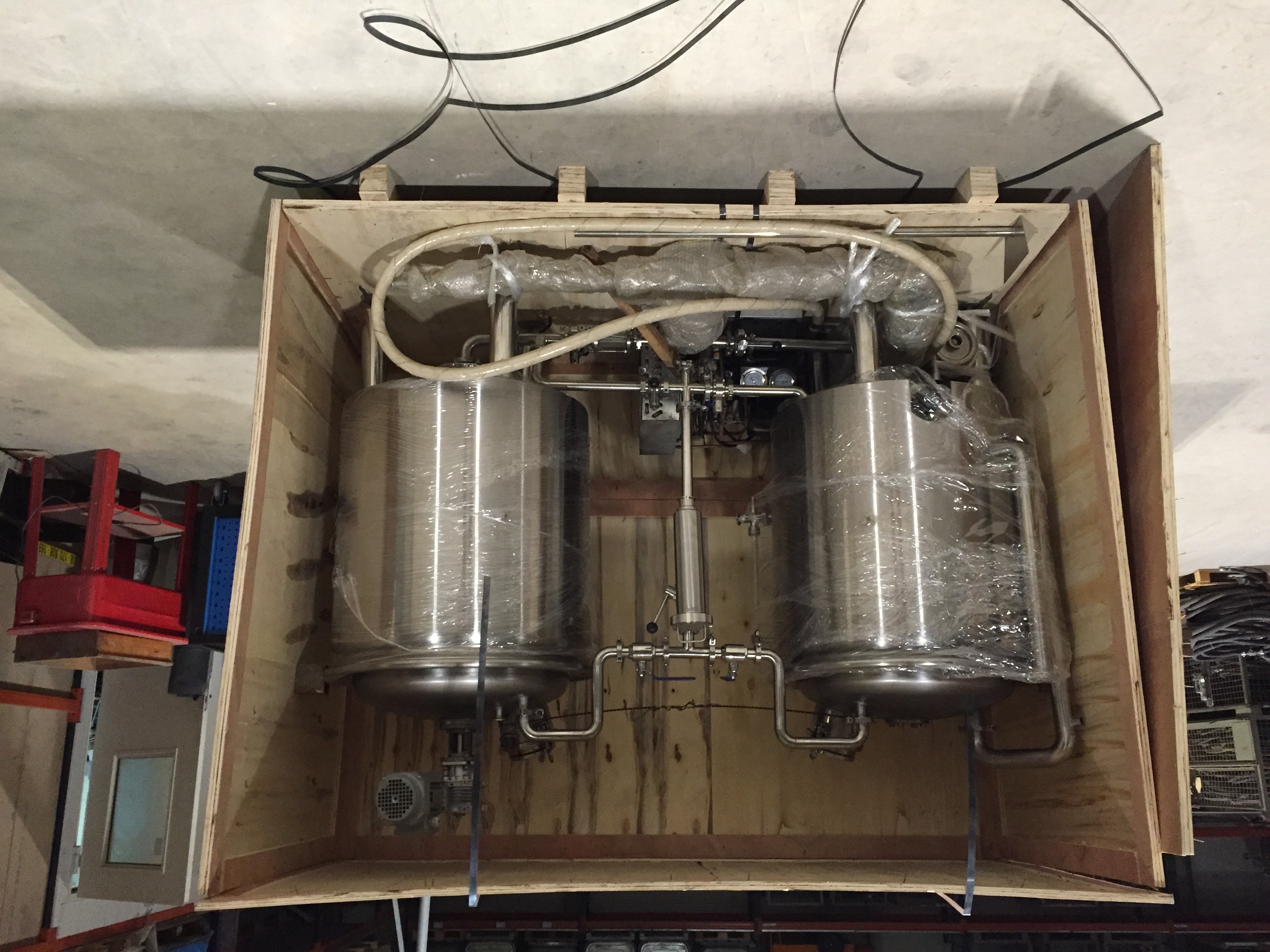 So kam dann kurz vor Ende letzten Jahres eine Lieferung aus China, bestehend aus Brauanlage, Fermenter, Eis Wasser Tank und Kühlaggregat sowie einigem an Zubehör.