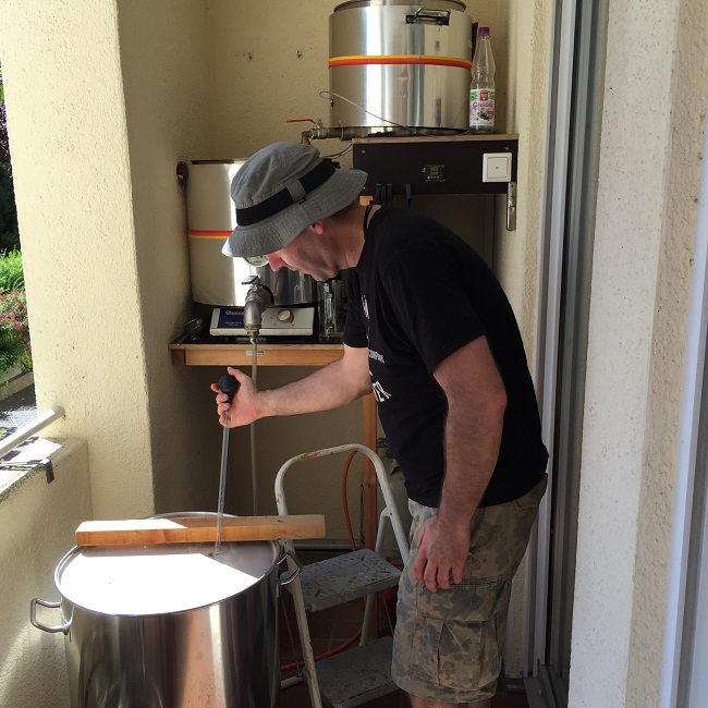 Danach wurde es Zeit die Würze in den Gärkeller zu befödern, bei mir nach unten in den Hof. So brauche ich nicht alles durch die Wohnung zu schleppen