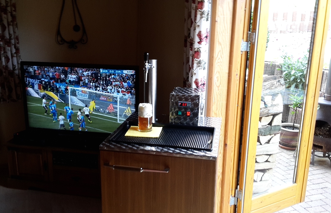 Die mobile Zapfanlage musste heute zum Achtelfinale mal ins Wohnzimmer wandern.
