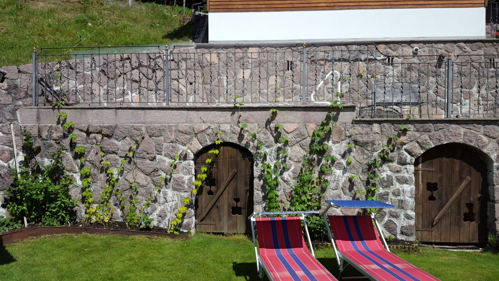 Der Hopfen (Sorte Unbekannt) unterm Terrassendach ist schon bei sieben Meter und wuchert weiter.