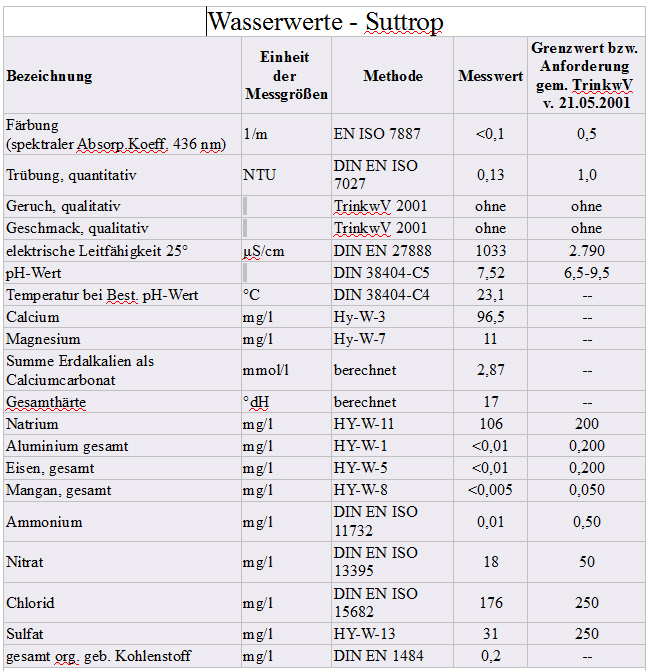 Das kann also wirklich nur am Wasser liegen, ich habe im Anhang eine Tabelle unseres Trinkwassers hochgeladen, ich wäre euch sehr dankbar, wenn ihr sie euch mal anseht, vielleicht fällt einem ja sofort auf, was der Auslöser ist.