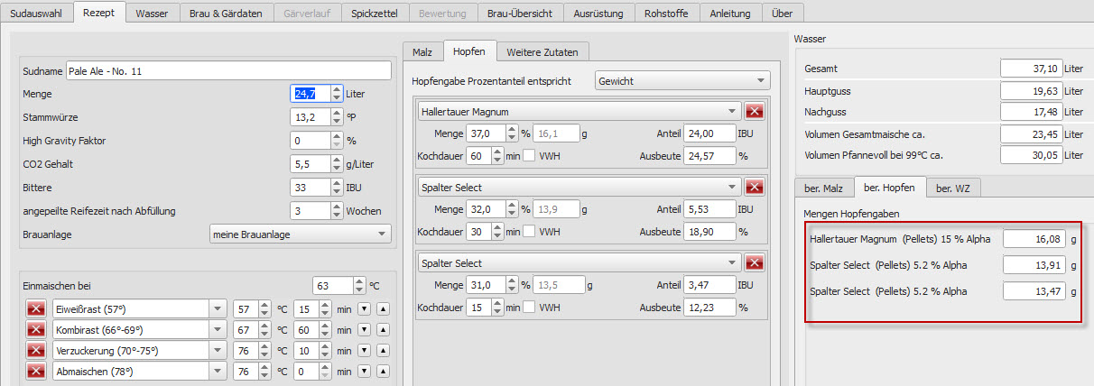 Ich habe eine Frage bzgl. der Hopfenmenge bei dem Rezept Pale Ale No.11