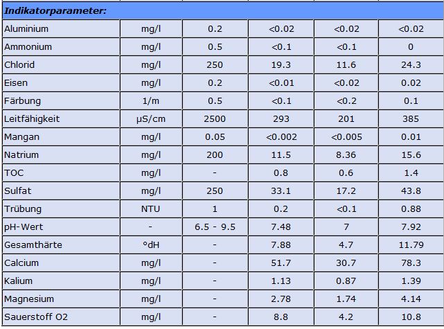 hier die Wasserwerte.