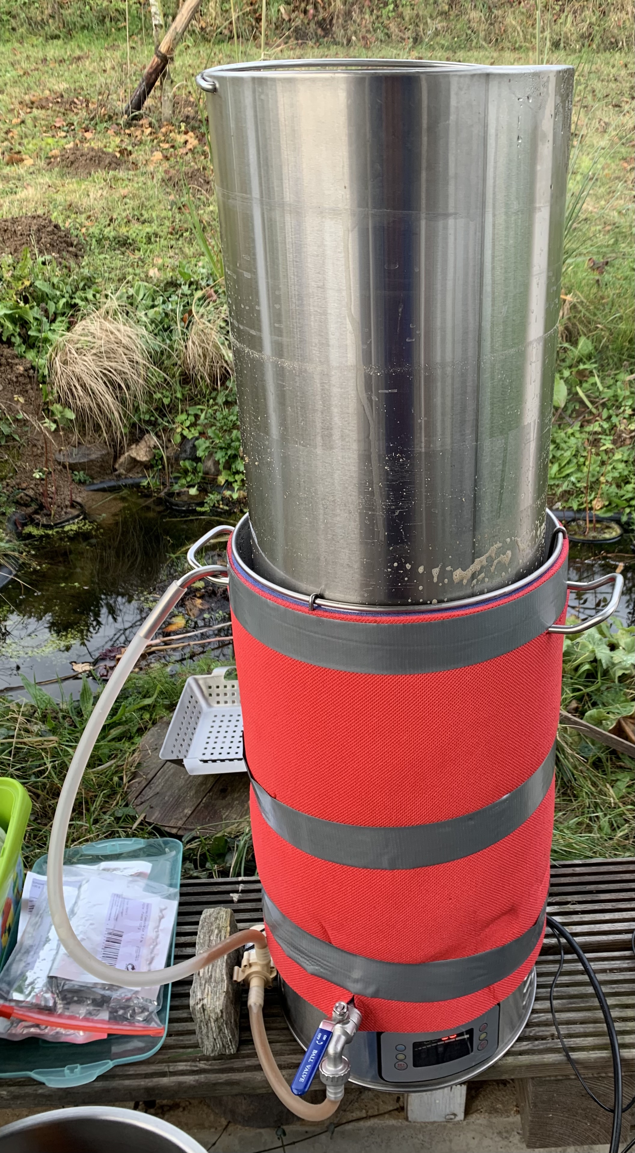 Grundsätzlich braue ich mit zwei 34L Amihopfen Töpfen und einer Yota Induktionsplatte, vergoren wird im 50L Polsinelli Fass.