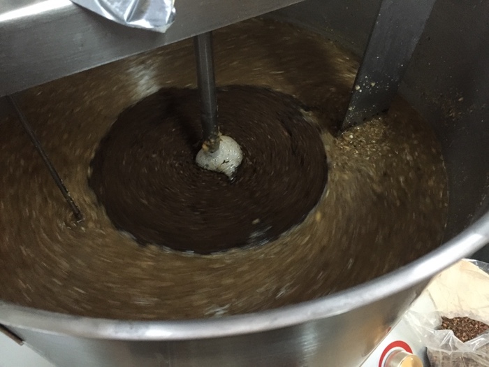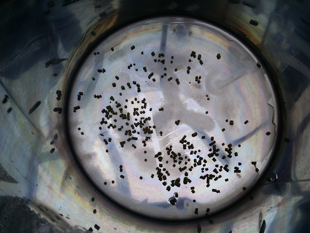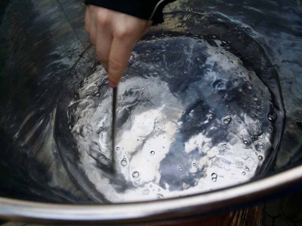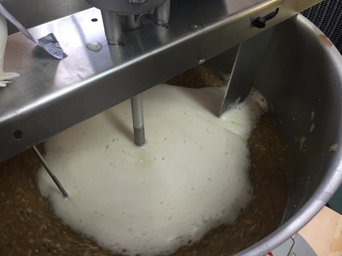 >> So zähflüssig hab ich noch nie eingemaischt: 6,9 kg Malz auf 18L HG (und im Thermoport befand sich natürlich auch noch das geknickte Läuterblech) :Shocked