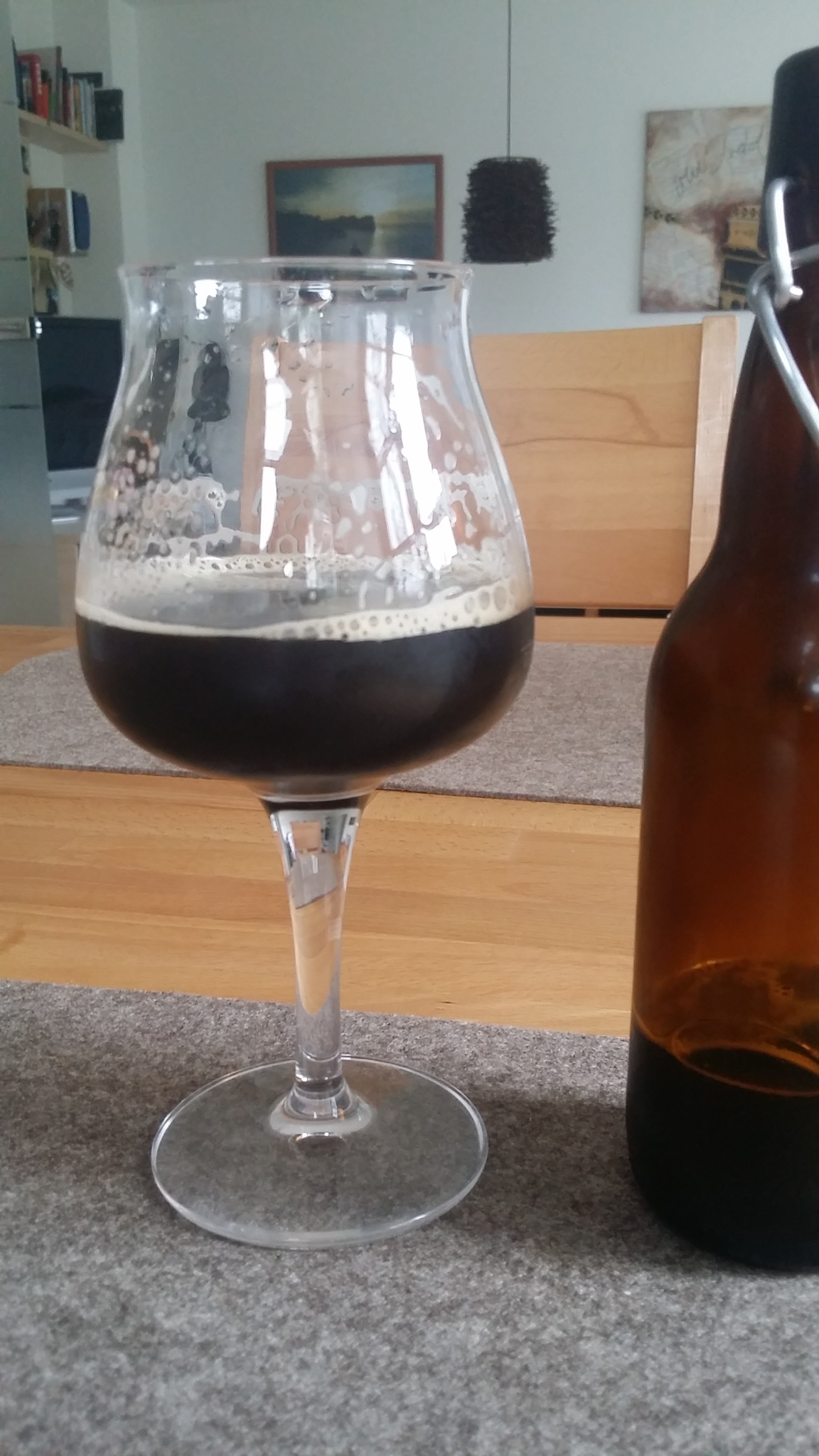 Es schmeckt immer noch sehr lecker und gewinnt an Komplexität, obwohl das umwerfende Hopfenaroma natürlich nicht mit dem Aroma zu Beginn vergleichbar ist. Die Kaffee-, und ich meine zunehmend auch Lakritztöne, sind ein Genuss!